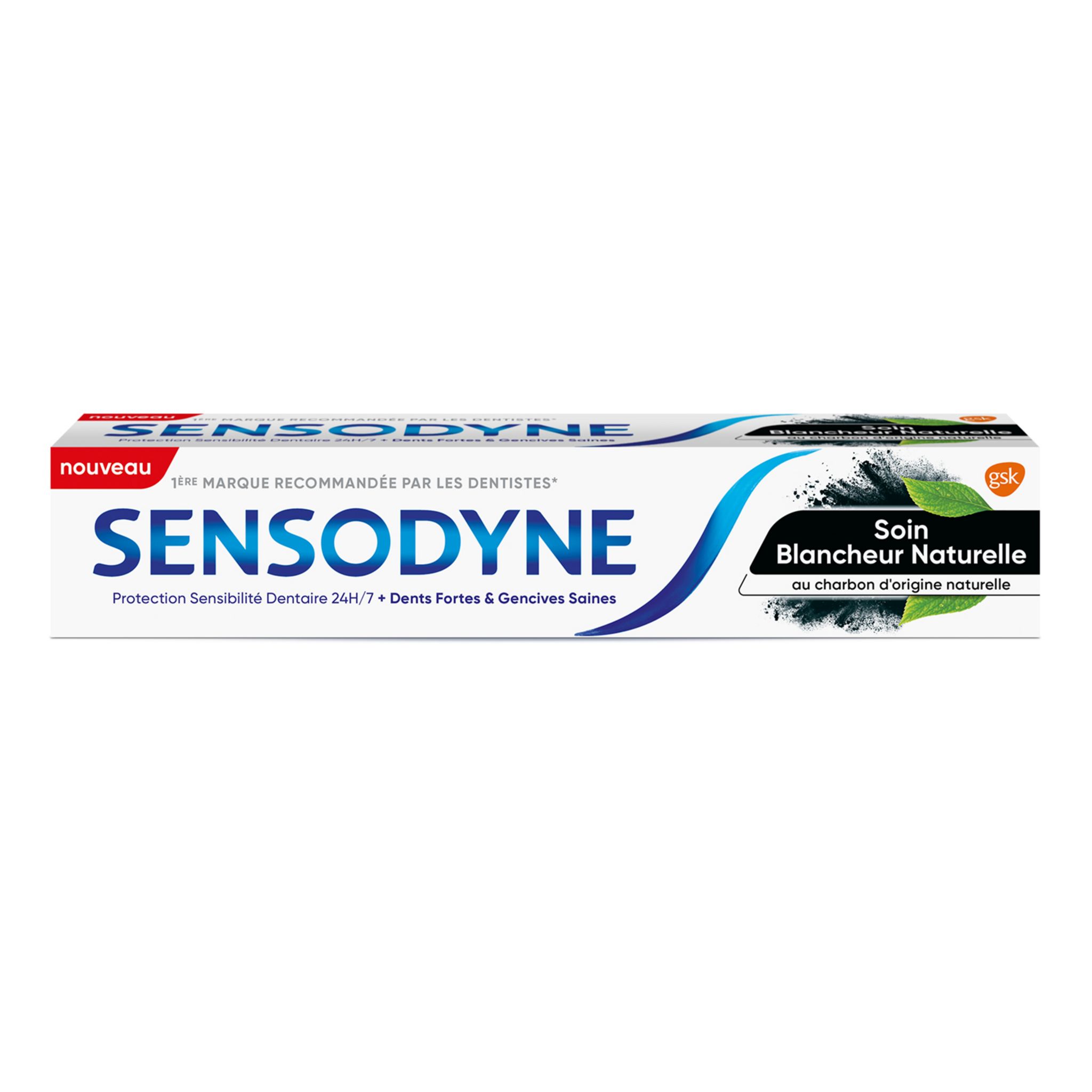 Qu'est-ce que la sensibilité dentaire ? De nombreuses personnes souffrent de sensibilité dentaire. Lorsque l'email est abîmé (par la consommation d'aliments ou boissons au quotidien) ou lorsque les gencives se rétractent, la dentine est alors exposée. Cela peut engendrer de la sensibilité dentaire, au moment même où la dent entre en contact avec des aliments ou boissons particulièrement chauds ou froids. Qu'apporte Sensodyne ? En brossage deux fois par jour, Sensodyne est cliniquement prouvé pour soulager la sensibilité dentaire pendant 24H/7, et procure tous les bénéfices d'un dentifrice quotidien : des dents fortes, des gencives saines et une haleine fraîche. Contient également du charbon issu de la noix de coco pour des dents naturellement plus blanches. En brossage quotidien deux fois par jour, Sensodyne Soin Blancheur Naturelle : • Apporte une protection longue durée contre la sensibilité dentaire • Contient du fluor pour une protection efficace contre les caries • Aide à éliminer les taches pour des dents plus blanches • Aide à maintenir les gencives saines • Procure une sensation de fraîcheur et de propreté Sensodyne est la 1ère marque de dentifrice recommandée par les dentistes*. La marque Sensodyne est recommandée par les dentistes depuis de nombreuses années. Sensodyne Soin Blancheur Naturelle est un dentifrice au fluor conçu pour une utilisation quotidienne et pour un soulagement de la sensibilité dentaire jour après jour. *Sensodyne est la marque de dentifrice la plus fréquemment recommandée par les dentistes en cas de sensibilité dentaire - Etude quantitative Ipsos 2020.