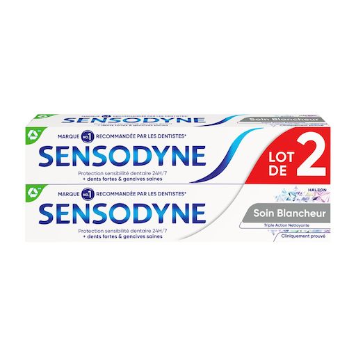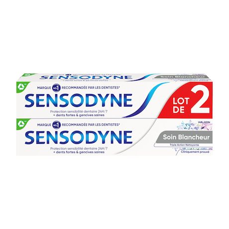 Qu'est-ce que la sensibilité dentaire ? De nombreuses personnes souffrent de sensibilité dentaire. Lorsque l'email est abîmé (par la consommation d'aliments ou boissons au quotidien) ou lorsque les gencives se rétractent, la dentine est alors exposée. Cela peut engendrer de la sensibilité dentaire, au moment même où la dent entre en contact avec des aliments ou boissons particulièrement chauds ou froids. Qu'apporte Sensodyne ? En brossage deux fois par jour, Sensodyne est cliniquement prouvé pour soulager la sensibilité dentaire pendant 24H/7, et procure tous les bénéfices d'un dentifrice quotidien : des dents fortes, des gencives saines et une haleine fraîche. Contient également du charbon issu de la noix de coco pour des dents naturellement plus blanches. En brossage quotidien deux fois par jour, Sensodyne Soin Blancheur Naturelle : • Apporte une protection longue durée contre la sensibilité dentaire • Contient du fluor pour une protection efficace contre les caries • Aide à éliminer les taches pour des dents plus blanches • Aide à maintenir les gencives saines • Procure une sensation de fraîcheur et de propreté Sensodyne est la 1ère marque de dentifrice recommandée par les dentistes*. La marque Sensodyne est recommandée par les dentistes depuis de nombreuses années. Sensodyne Soin Blancheur Naturelle est un dentifrice au fluor conçu pour une utilisation quotidienne et pour un soulagement de la sensibilité dentaire jour après jour. *Sensodyne est la marque de dentifrice la plus fréquemment recommandée par les dentistes en cas de sensibilité dentaire - Etude quantitative Ipsos 2020.