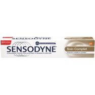 DENTIFRICE SOIN COMPLET Dentifrice Soin Complet 75 ml Le dentifrice Sensodyne Soin Complet agit directement à l’intérieur de la dent et crée une protection apaisante autour du nerf pour soulager la sensibilité dentaire. En brossage quotidien deux fois par jour, ce dentifrice permet de protéger les dents sensibles pendant 24h. Au quotidien, le dentifrice Sensodyne Soin Complet : -renforce l’émail. En effet, il contient du fluor actif qui favorise la reminéralisation de l’émail. -aide à garder des gencives saines. Il contient un agent anti-bactérien (le citrate de zinc) qui, associé à un brossage régulier, aide à combattre l’ensemble des bactéries présentes dans votre bouche.