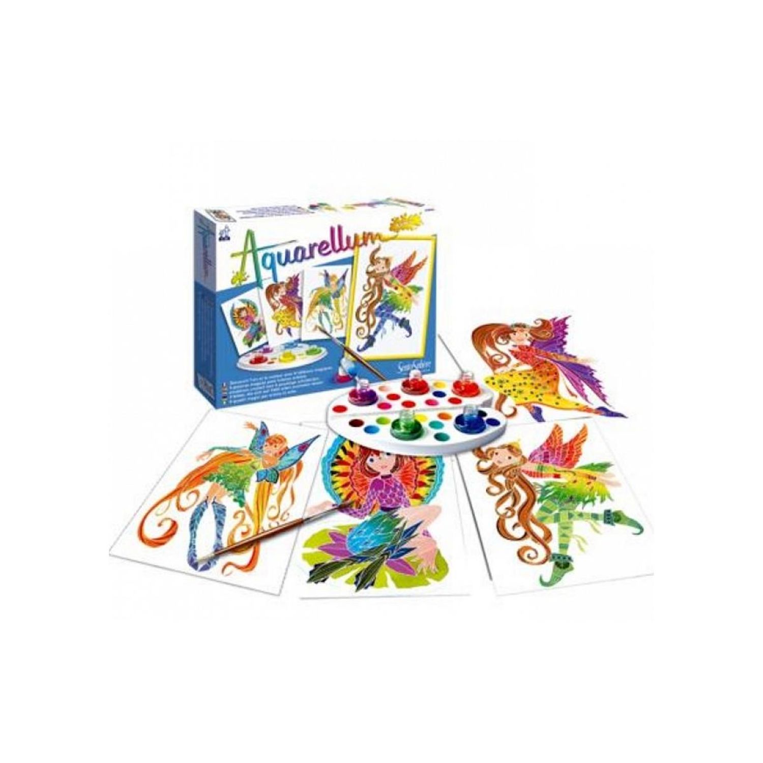 Coffret Aquarellum Junior Nymphes Fantastique ! Quelques gouttes de peinture et tous les enfants pourront réaliser de véritables chefs-d'?uvre Basé sur la technique de sertissage sur papier vélin, qui ne laisse la peinture adhérer que sur des surfaces réservées, Aquarellum Junior constitue une activ