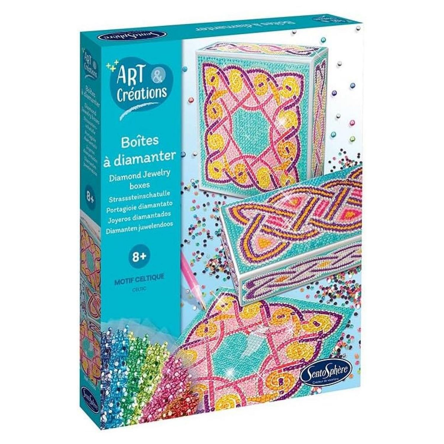 Grâce à ce kit, créez deux magnifiques boîtes à bijoux en les habillant de milliers de strass de tailles, formes et couleurs différentes !