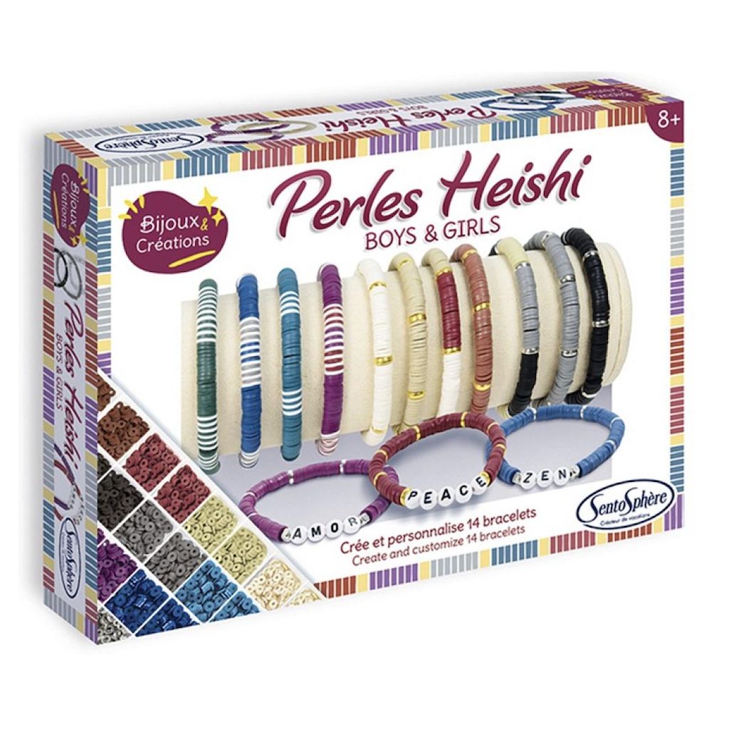 CRÉATION DE 14 BRACELETS UNIQUES : Ce coffret créatif permet aux enfants de concevoir environ 14 bracelets personnalisés en utilisant plus de 1600 perles colorées et des lettres pour des créations variées et originales. KIT COMPLET AVEC PERLES, LETTRES ET FILS : Le coffret contient tous les éléments nécessaires pour créer des bracelets : des perles Heishi, des lettres personnalisées et des fils, offrant aux enfants une grande variété de choix pour leurs créations. STIMULE LA CRÉATIVITÉ ET LA PRÉCISION : Parfait pour les enfants dès 8 ans, ce kit développe leur sens de la créativité, de la coordination et de la patience en leur permettant de créer des bijoux personnalisés. DES BRACELETS ADAPTÉS AUX GOÛTS DE CHACUN : Avec les perles et lettres personnalisées, les enfants peuvent réaliser des bracelets uniques en fonction de leurs goûts, en y inscrivant des mots ou des prénoms. DES BRACELETS ADAPTÉS AUX GOÛTS DE CHACUN : Avec les perles et lettres personnalisées, les enfants peuvent réaliser des bracelets uniques en fonction de leurs goûts, en y inscrivant des mots ou des prénoms.