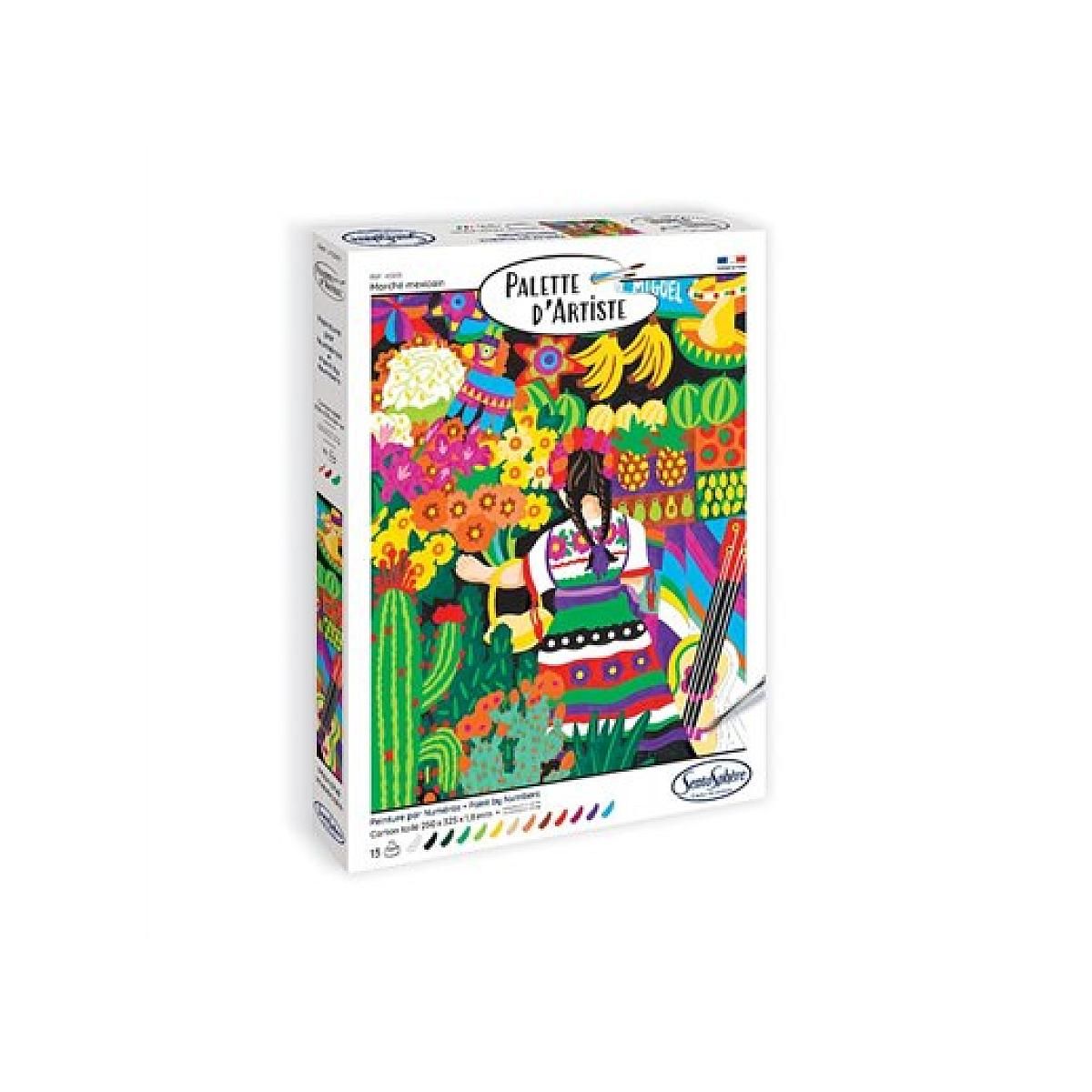Plongez dans l'atmosphère colorée et festive du Mexique avec la Palette d'Artiste ? Marché Mexicain (Peinture par Numéro) ! Ce kit vous invite à peindre un marché vibrant, animé de couleurs chaudes et de produits typiques, guidé par un système de numérotation simple et intuitif. Le carton toilé de haute qualité (250 x 325 x 1,8 mm) garantit une finition soignée et un rendu éclatant. Parfait pour les débutants comme pour les artistes confirmés, ce coffret allie détente, précision et plaisir créatif. Une manière originale d'apporter une touche de chaleur et de culture mexicaine à votre intérieur !
