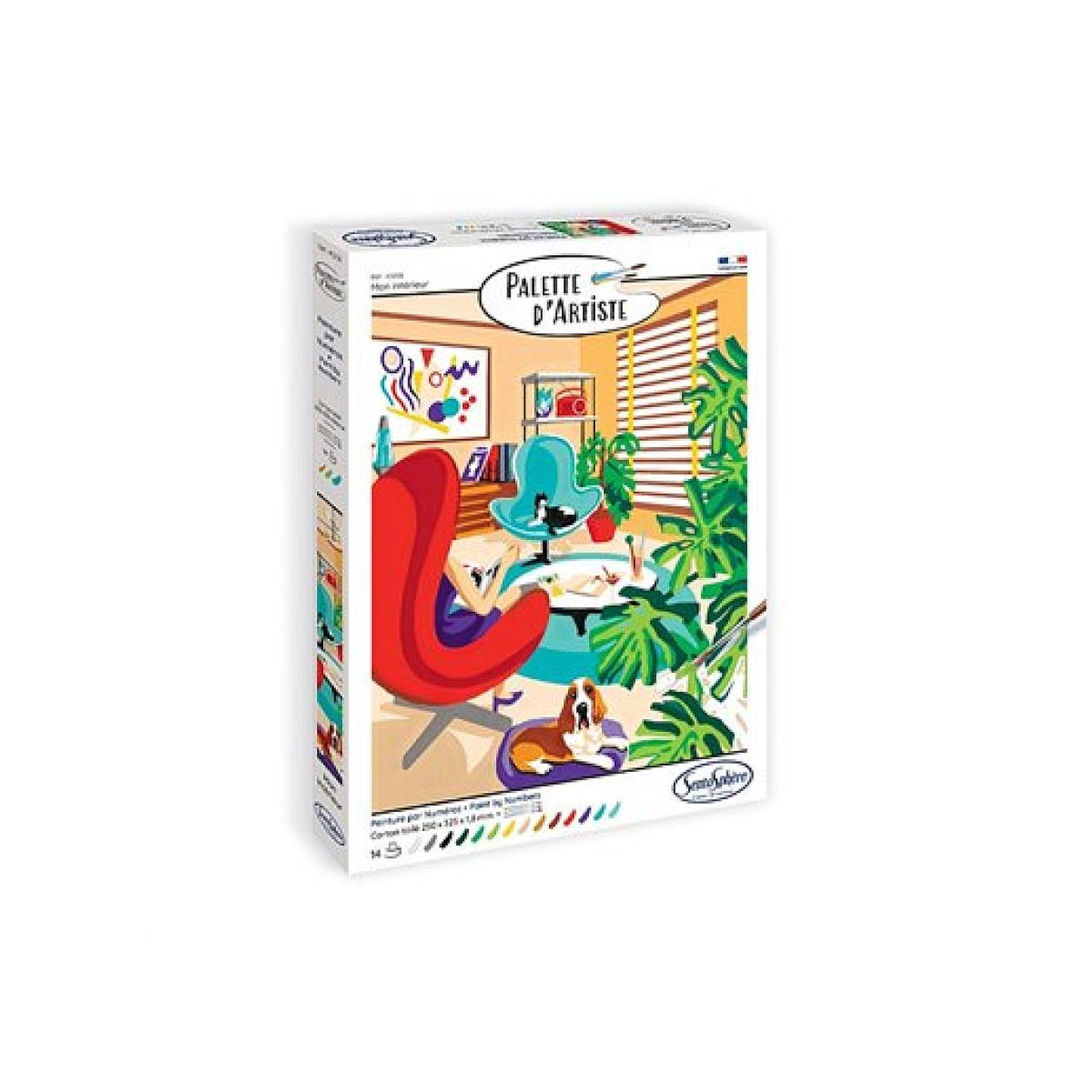 Créez une ?uvre d'art unique et personnelle avec la Palette d'Artiste ? Mon Intérieur (Peinture par Numéro) ! Ce kit vous permet de peindre une scène intime et chaleureuse, représentative de votre propre espace intérieur, guidé par un système simple et intuitif de numérotation. Le carton toilé de haute qualité (250 x 325 x 1,8 mm) assure un rendu net et professionnel, parfait pour sublimer votre décoration. Que vous soyez débutant ou artiste confirmé, ce coffret offre une expérience créative immersive et agréable. Une manière idéale d'ajouter une touche personnelle et artistique à votre chez-vous !