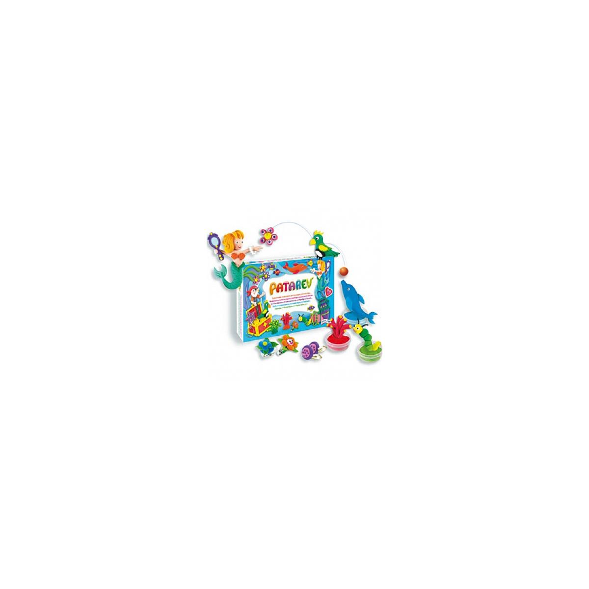 Patarev Maxi Coffret. Patarev est la pâte à modeler dont toutes les mamans ont toujours rêvé : elle ne tâche pas et ne colle ni aux doigts, ni aux vêtements, ni aux tables. En outre elle est rebondissante, parfumable, réhydratable. Contenu:. 8 pots de 30g. 2 porte-clés. 4 supports de bijoux. 1 couteau. 20 idées de création