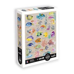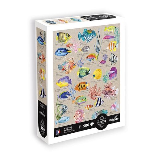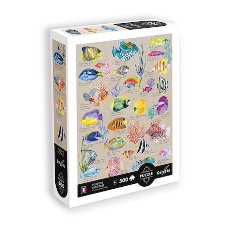 Plongez dans un monde marin vibrant avec le Puzzle 500 pièces ? Poissons Exotiques de Sentosphere. Ce magnifique puzzle au format Style affiche (33 × 48 cm) propose une illustration colorée inspirée des planches botaniques, représentant des poissons exotiques accompagnés de leur nom en français et en latin. Chaque pièce, de 1,9 × 1,7 cm, est unique, la découpe précise et le toucher ?soft-touch? rendent l'expérience tactile et apaisante. Fabriqué en France à partir de carton 100 % recyclé et dans une logique d'éco-conception, il est idéal pour les amateurs de puzzles débutants ou confirmés, désireux de décorer aussi bien qu'ils s'amusent. Un excellent choix pour se détendre, stimuler la concentration et orner un mur une fois terminé.