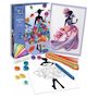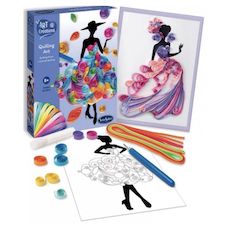 Ce coffret créatif vous permettra de découvrir la technique du Quilling tout en faisant vos premiers pas dans le stylisme ! Grâce à des bandes de papier multicolore, vous pourrez très facilement créer de magnifiques robes !. Le Quilling est une activité manuelle qui permet de créer de véritables ?uvres d'art avec une technique originale consistant à enrouler de fines bandes de papier multicolore. Il suffira ensuite de déformer les différents rouleaux de papier obtenus puis d'utiliser le tube de colle pour les placer en suivant les lignes de l'illustration du coffret. Bande après bande, un magnifique tableau, haut en couleurs, prendra vie ! Ce kit clé en main contient tout le matériel nécessaire pour que les enfants puissent facilement s'initier à ce loisir créatif !
