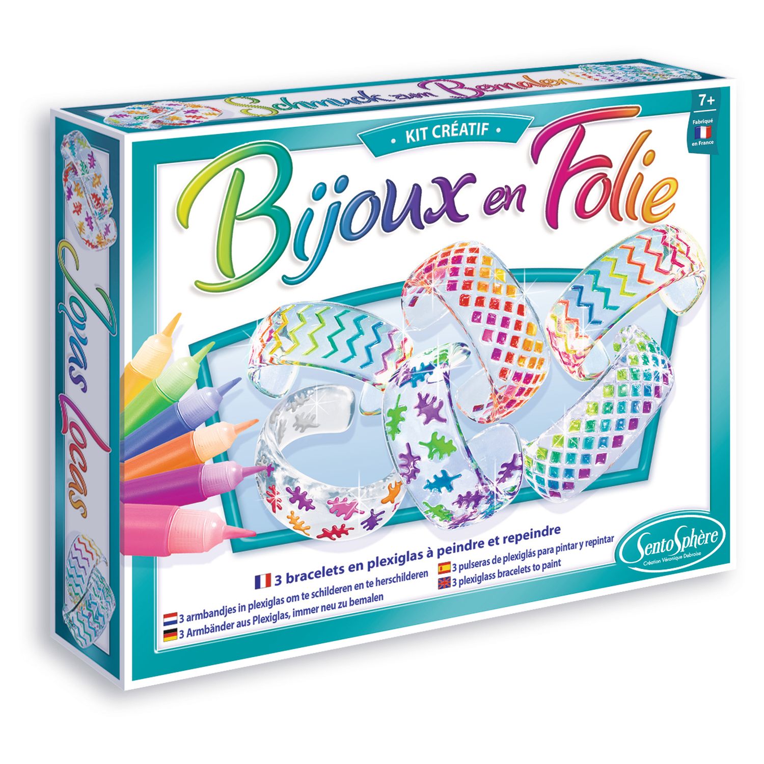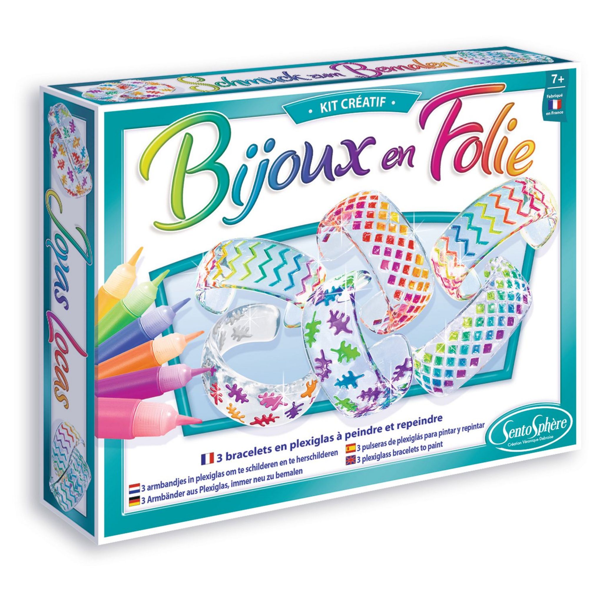 Cette boîté de loisir créatif propose trois bracelets transparents comme du cristal dont on peut peindre et repeindre les motifs avec une gamme de dix couleurs chatoyantes. La pellicule de peinture peut se retirer à l’aide d’une pointe pour permettre l’application de nouvelles teintes. Un produit aussi beau que créatif pour toutes les petites filles qui aiment la mode, les bijoux et le DIY.