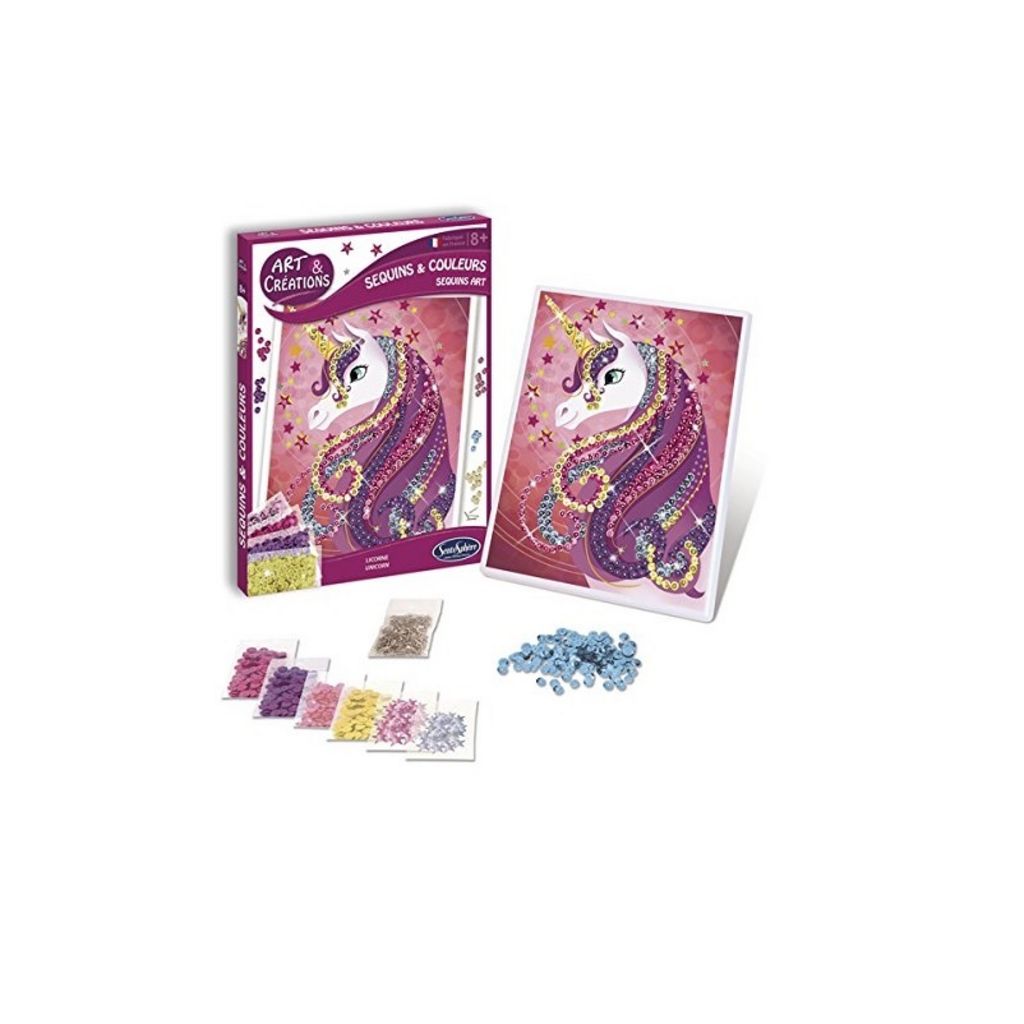 Grâce au coffret sequin licorne, réalise un sublime tableau scintillant et multicolore.