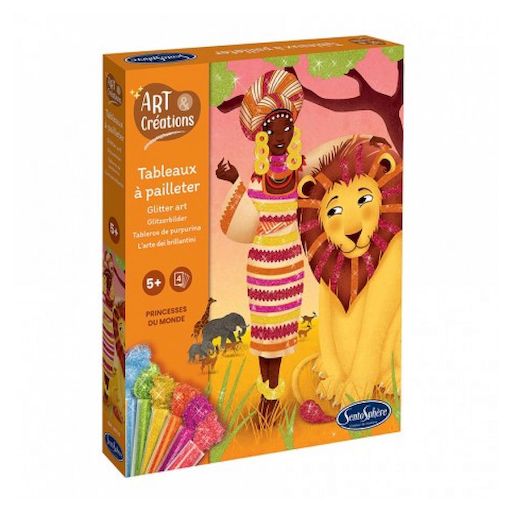 Parsemez de paillettes colorées ces deux Princesses pour que leurs magnifiques robes soient aussi belles qu'étincelantes ! L'illustration prendra alors vie et brillera de mille feux ! A l'aide des tubes de paillettes et d'illustrations prédécoupées et préencollées, les enfants pourront facilement donner vie à de magnifiques tableaux, sans se salir ! Il leur suffira d'agrémenter différents détails de l'illustration en suivant quelques étapes : Décoller la pellicule de la zone que vous souhaitez colorer , Verser des paillettes dessus , Utiliser le pinceau pour bien répartir les paillettes sur toute la forme dévoilée , Admirer le résultat et recommencer avec une nouvelle zone et une nouvelle couleur ! Cette activité manuelle est aussi magique qu'impressionnante et offre un résultat garanti qui encouragera les enfants dans la création !