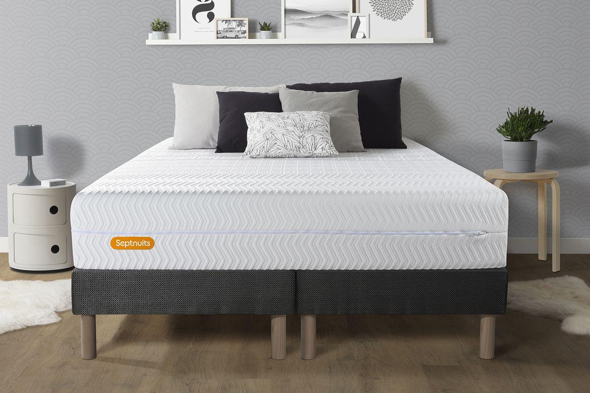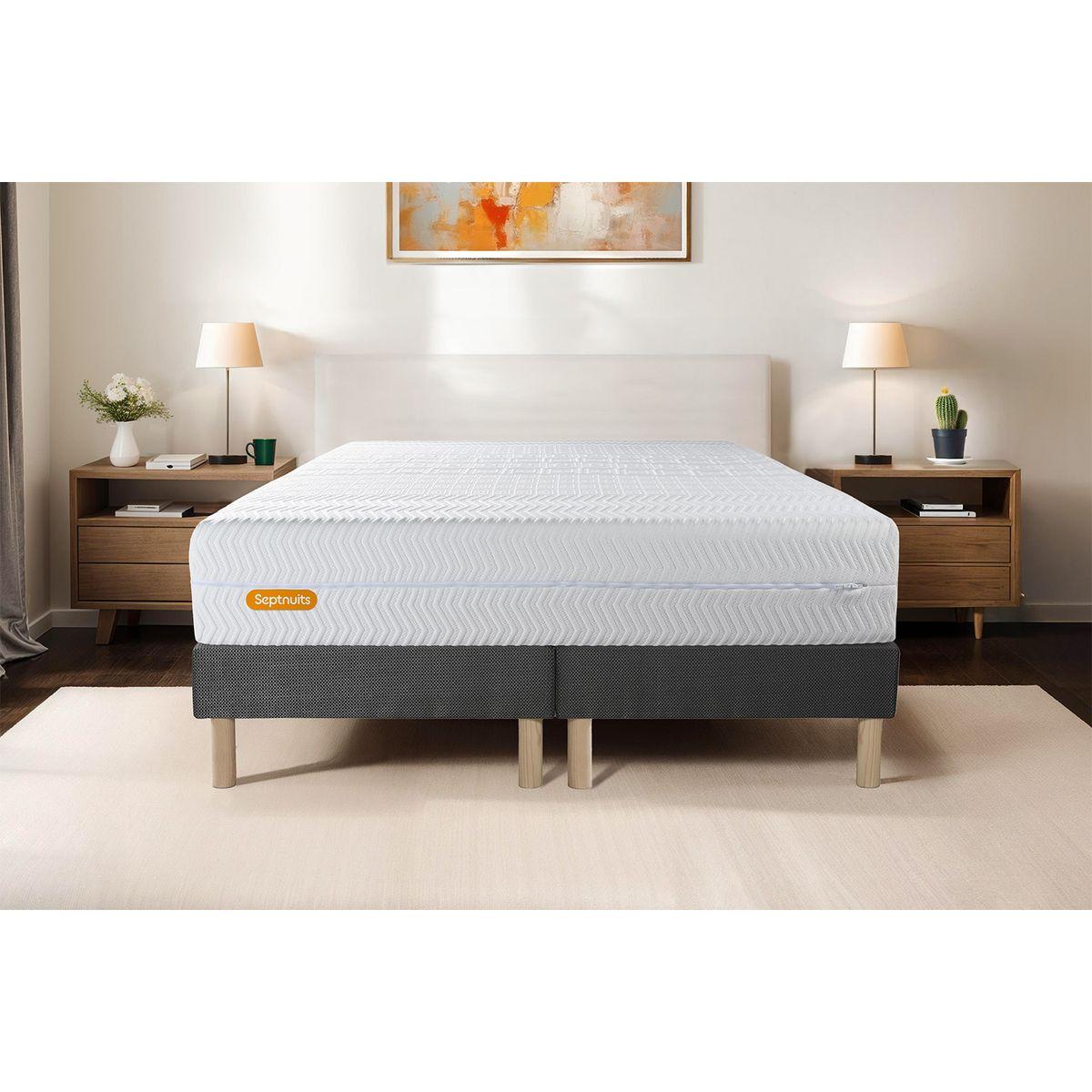 Matelas 160x200 + double sommiers gris 80x200 Memo Bio Mousse à mémoire de forme 5 zones de confort Maxi épaisseur Déhoussable