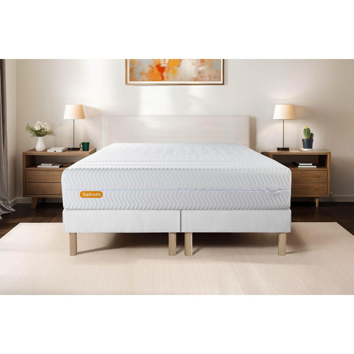 Le matelas Memo Bio de la marque Septnuits bénéficie des dernières innovations en matière de mousse à mémoire de forme. Sa conception vous offrira un soutien très précis avec 5 zones différenciées pour un ajustement adapté à chaque zone de votre corps. La mousse à mémoire de forme BioCell est un produit innovant à base de produits naturels d'origine végétale, elle apporte une sensation de moelleux et permet d'améliorer vos nuits. Sa maxi épaisseur vous assure une nuit de bien-être et un reveil plein d'énergie. Son plus : Déhoussable (Housse lavable en machine).