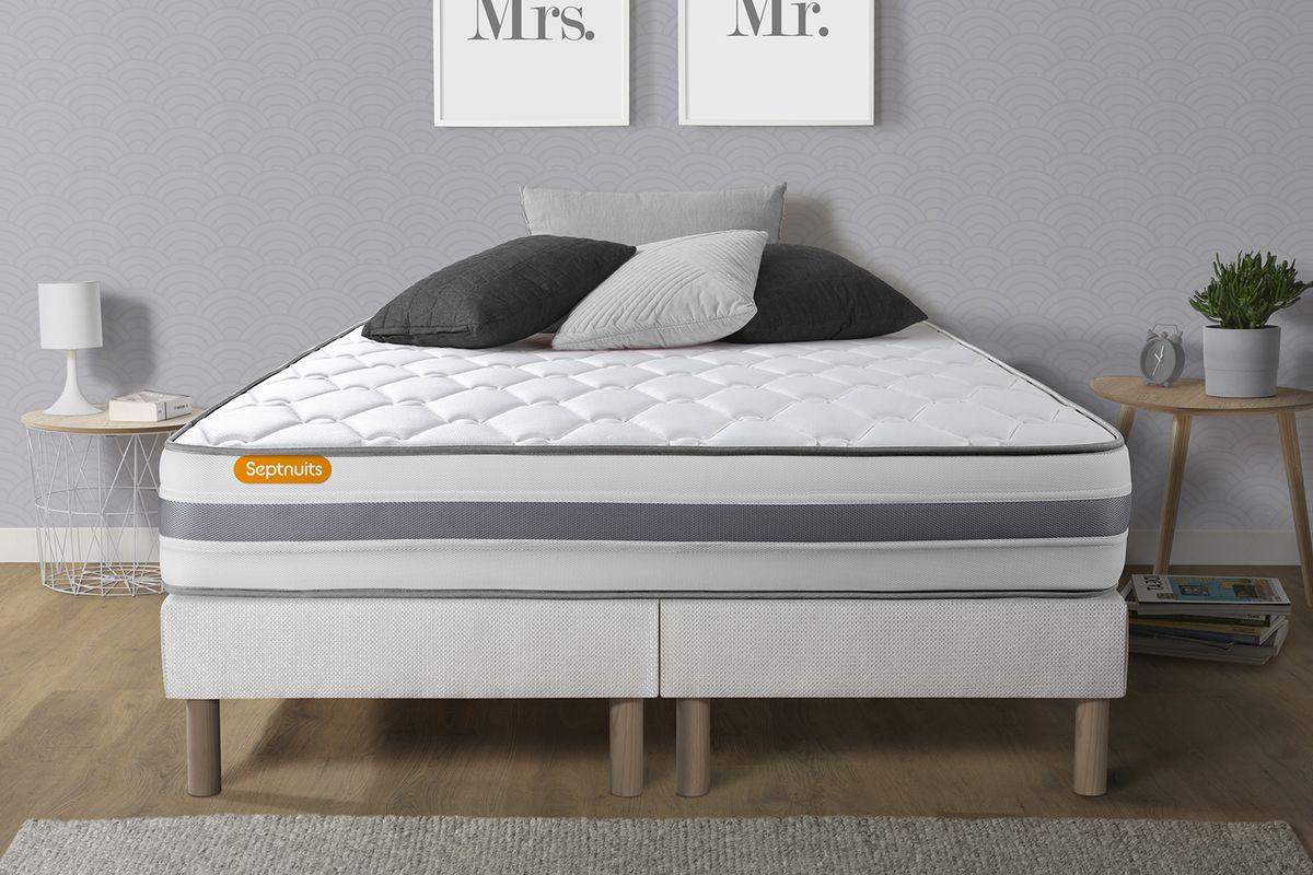 Le matelas Memo Spring de la marque Septnuits est constitué d'une âme en ressorts ensachés procurant un soutien très précis point par point avec 3 zones différenciées. Sa conception unique vous offrira un soutien ferme et un accueil dynamique. Sa Plate-bande 3D micro aérée, associée à son coutil micro perforé ultra respirable et sa fibre polyester vous garantissent une ventilation active du matelas. Sa maxi épaisseur vous assure une nuit de bien-être. Son plus ses ressorts ensachés pour une parfaite indépendance de couchage.