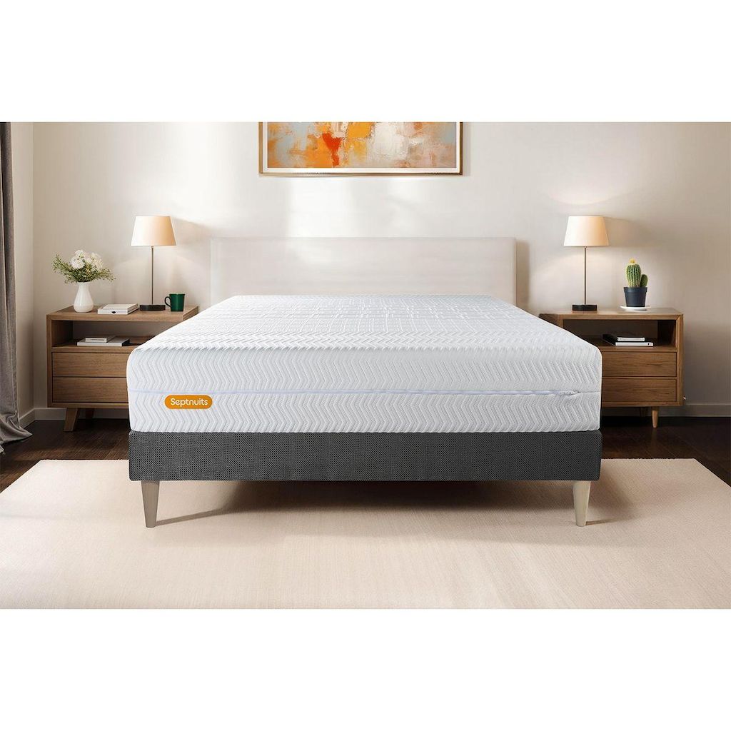 Le matelas Memo Bio de la marque Septnuits bénéficie des dernières innovations en matière de mousse à mémoire de forme. Sa conception vous offrira un soutien très précis avec 5 zones différenciées pour un ajustement adapté à chaque zone de votre corps. La mousse à mémoire de forme BioCell est un produit innovant à base de produits naturels d'origine végétale, elle apporte une sensation de moelleux et permet d'améliorer vos nuits. Sa maxi épaisseur vous assure une nuit de bien-être et un reveil plein d'énergie. Son plus : Déhoussable (Housse lavable en machine).