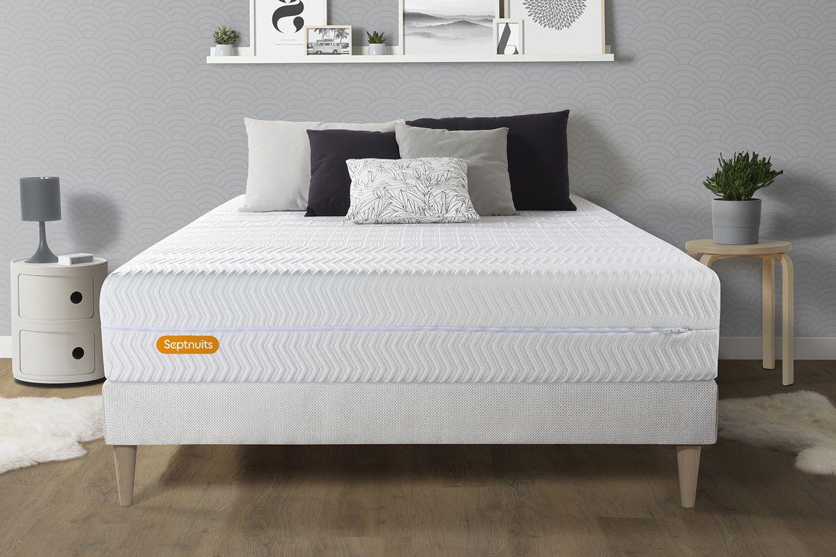 Le matelas Memo Bio de la marque Septnuits bénéficie des dernières innovations en matière de mousse à mémoire de forme. Sa conception vous offrira un soutien très précis avec 5 zones différenciées pour un ajustement adapté à chaque zone de votre corps. La mousse à mémoire de forme BioCell est un pro