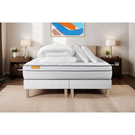 Le matelas Memo Luxe de Septnuits est constitué d'une âme en ressorts ensachés procurant un soutien très précis point par point avec 5 zones différenciées. Sa conception unique vous offrira un soutien ferme. Son garnissage en fibres polyester et sa mousse à mémoire de forme procurent un accueil moel
