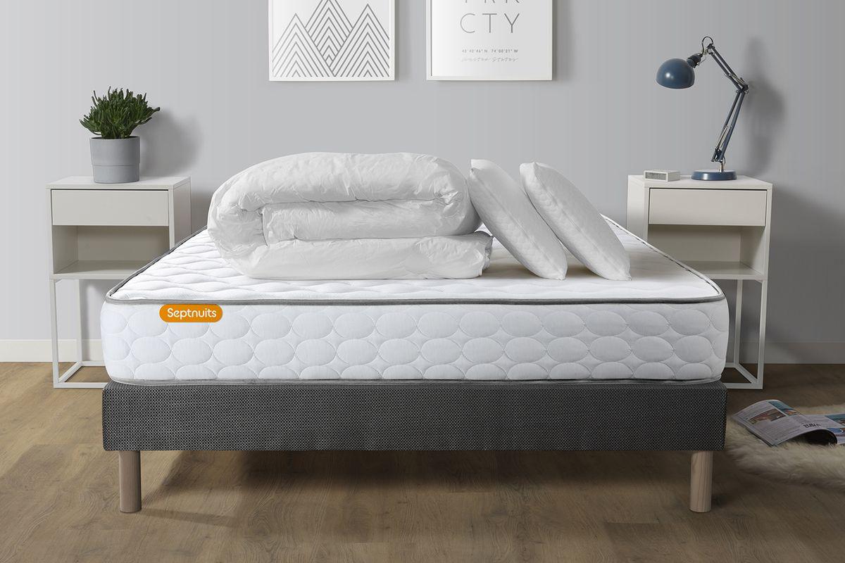 Pack matelas Memo + sommier gris + 2 oreillers mémoire de forme