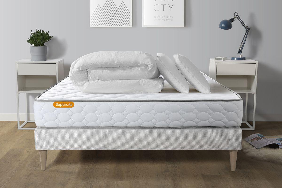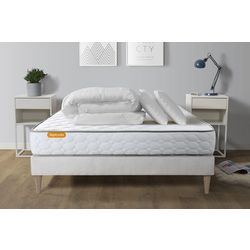Pack matelas Memo + sommier kit blanc + 2 oreillers mémoire de forme