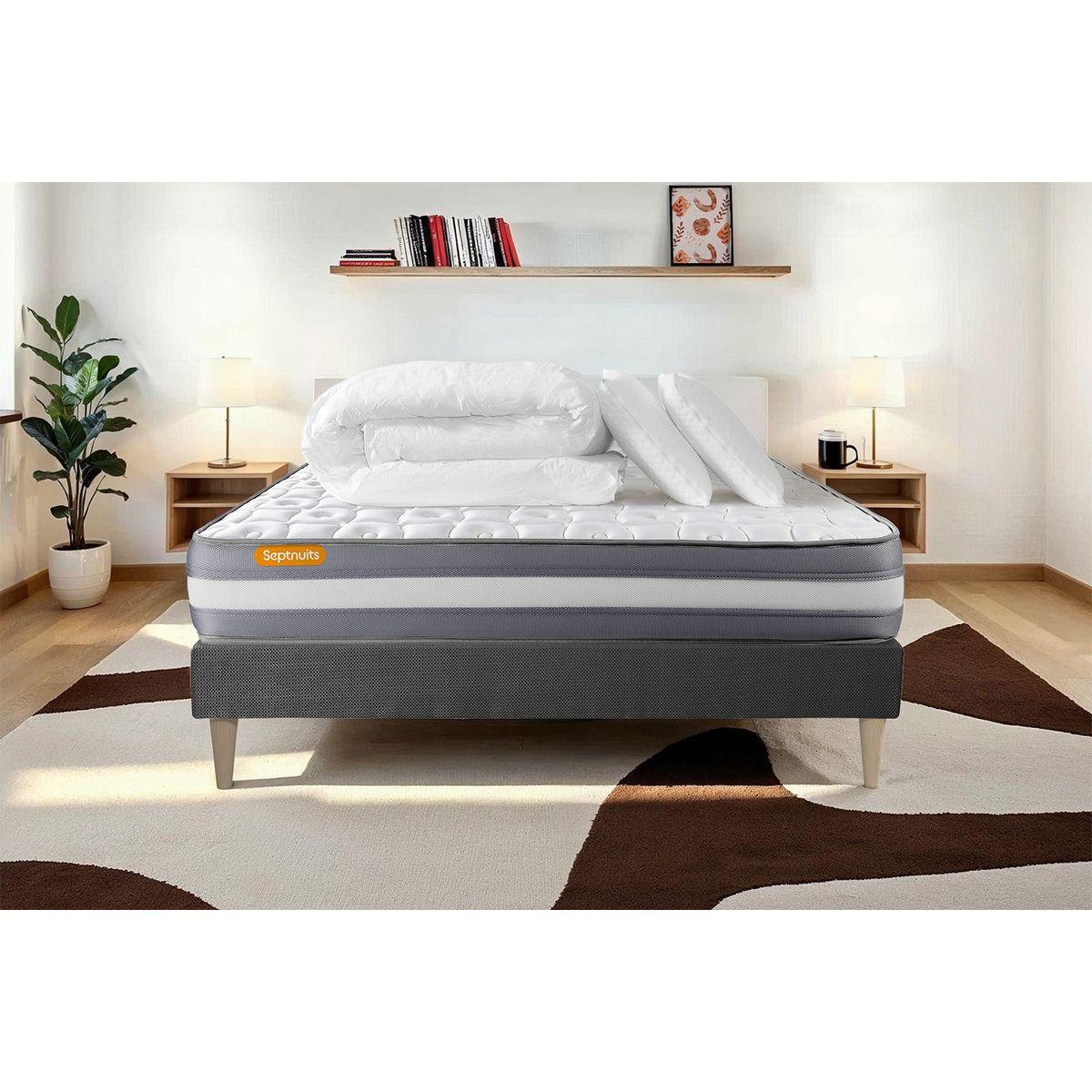 PACK matelas + sommier gris 160x200 Memo Plus Mémoire de forme 3 zones + 2 oreillers + couette