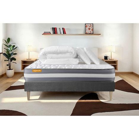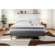 PACK matelas + sommier gris Memo Plus Mémoire de forme 3 zones + 2 oreillers + couette