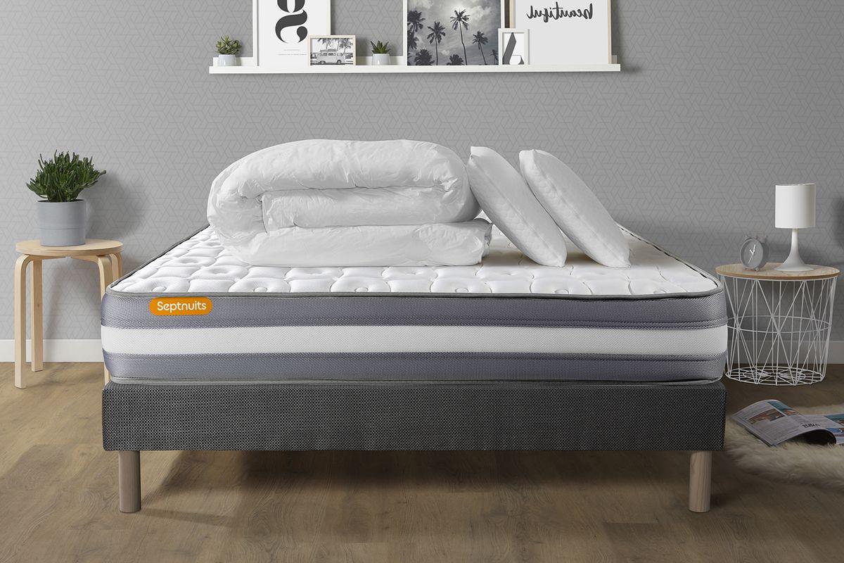 PACK matelas + sommier gris 140x190 Memo Plus Mémoire de forme 3 zones + 2 oreillers + couette