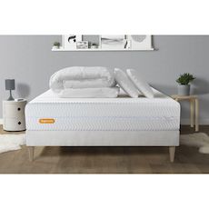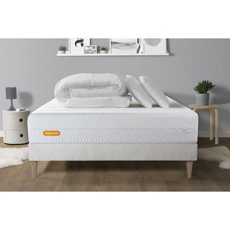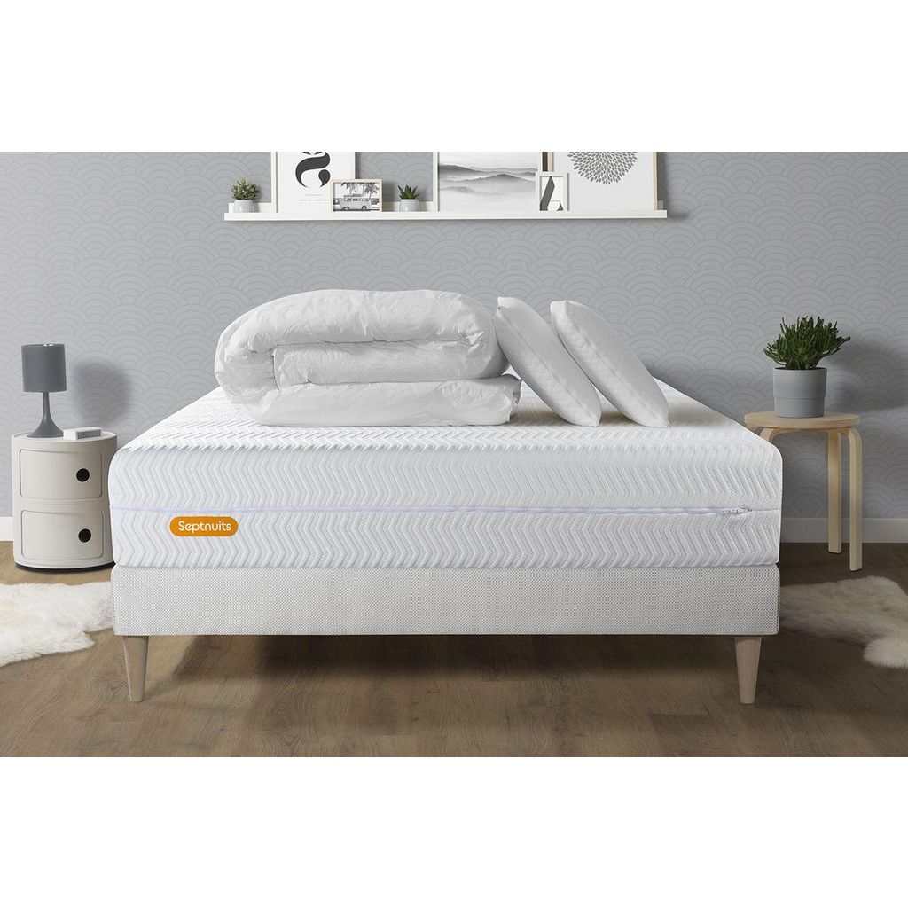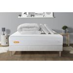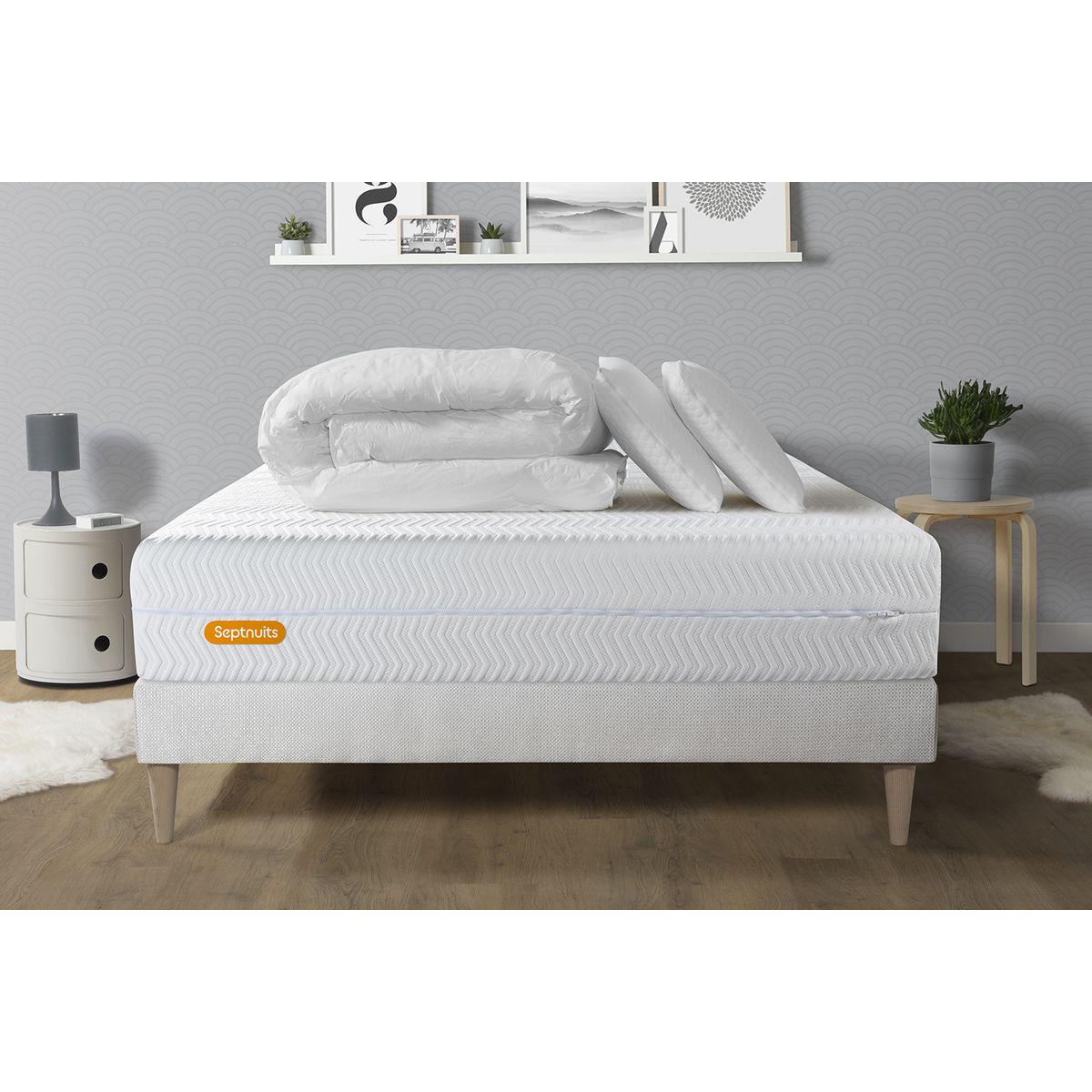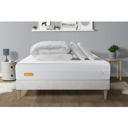 PACK Matelas + sommier kit blanc Memo Bio Mousse à mémoire de forme Maxi épaisseur + Couette + 2 oreillers