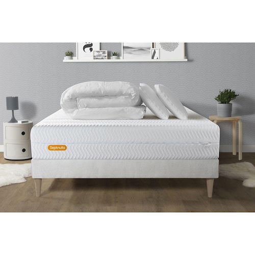 Le matelas Memo Bio de la marque Septnuits bénéficie des dernières innovations en matière de mousse à mémoire de forme. Sa conception vous offrira un soutien très précis avec 5 zones différenciées pour un ajustement adapté à chaque zone de votre corps. La mousse à mémoire de forme BioCell est un produit innovant à base de produits naturels d'origine végétale, elle apporte une sensation de moelleux et permet d'améliorer vos nuits. Sa maxi épaisseur vous assure une nuit de bien-être et un reveil plein d'énergie. Son plus : Déhoussable (Housse lavable en machine).