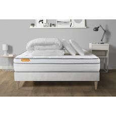 Pack matelas + sommier kit blanc Memo Luxe Ressorts ensachés + mémoire de forme + Couette + 2 oreillers