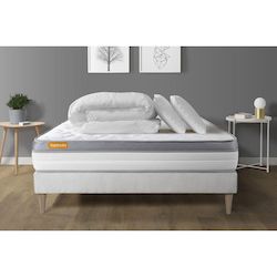 Pack matelas + sommier kit blanc Memo Zen Mousse à mémoire de forme MAXI épaisseur + Couette + 2 oreillers