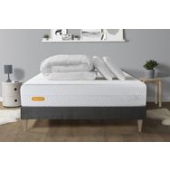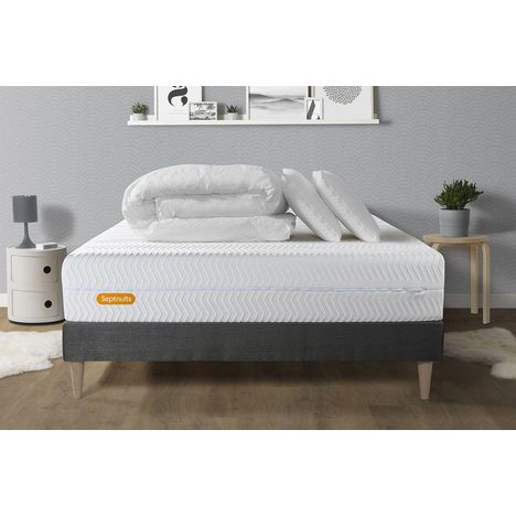 PACK Matelas + sommier kit gris Memo Bio Mousse à mémoire de forme Maxi épaisseur + Couette + 2 oreillers