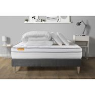 Pack matelas + sommier kit gris Memo Luxe Ressorts ensachés + mémoire de forme + Couette + 2 oreillers
