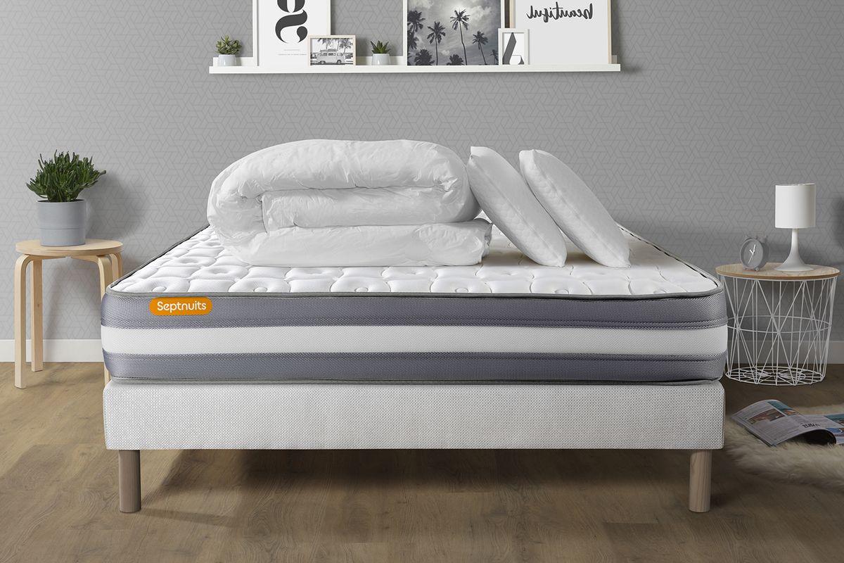 PACK matelas + sommier 160x200 Memo Plus Mémoire de forme 3 zones + 2 oreillers + couette