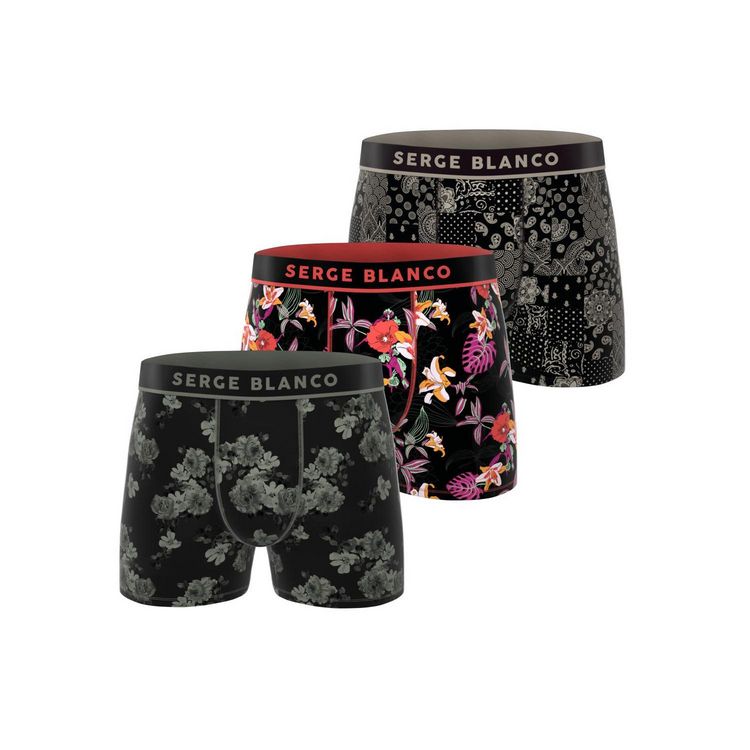 Découvrez le confort ultime avec le Lot de 3 Boxers Serge Blanco, des sous-vêtements incontournables pour hommes. Ces caleçons allient style et douceur, avec leur design boxer fantaisie imprimé de fleurs vintage.Disponibles en tailles M, L, XL et 2XL, ces boxers sont conçus pour s'adapter à toutes l