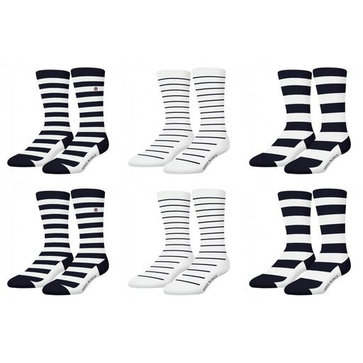 Découvrez ce lot de chaussettes élégantes avec un motif à rayures marin. Avec le lot de 6 paires de chaussettes hautes Serge Blanco, conçu pour l'homme moderne qui ne transige pas entre style et confort. Ces chaussettes sont confectionnées avec du coton peigné, pour une résistance plus importante. Ce coton de qualité supérieur apporte également plus de douceur au tissu.