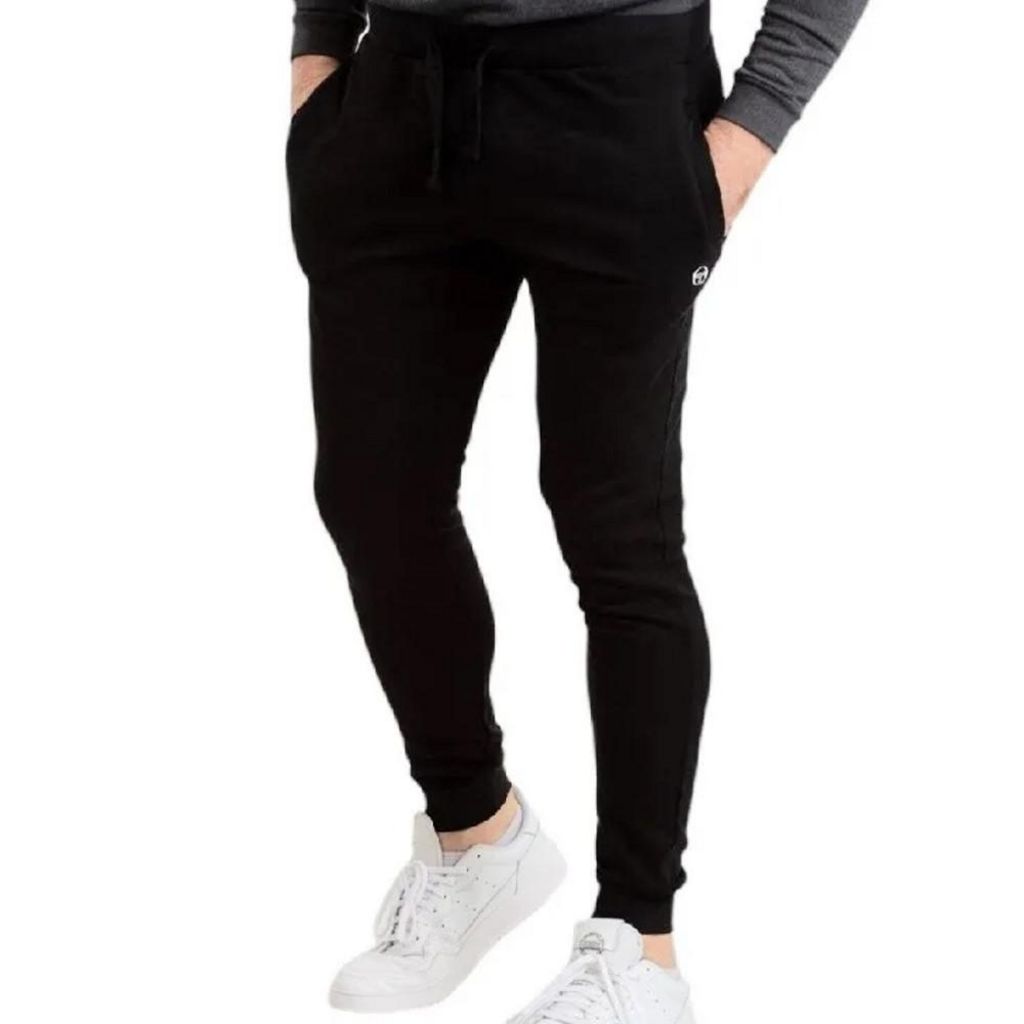 Optez pour le jogging Homme polaire de la marque Sergio Tacchini ! Matière : matière molletonnée Coloris : Noir Coupe : coupe regular altique Taille élastique et chevilles côtelées Écusson imprimé sur la jambe Composition 60% Cotton, 40% Polyester