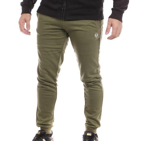 Optez pour le jogging Homme polaire de la marque Sergio Tacchini ! Matière : matière molletonnée Coloris : Kaki Coupe : coupe regular altique Taille élastique et chevilles côtelées Écusson imprimé sur la jambe Composition 60% Cotton, 40% Polyester