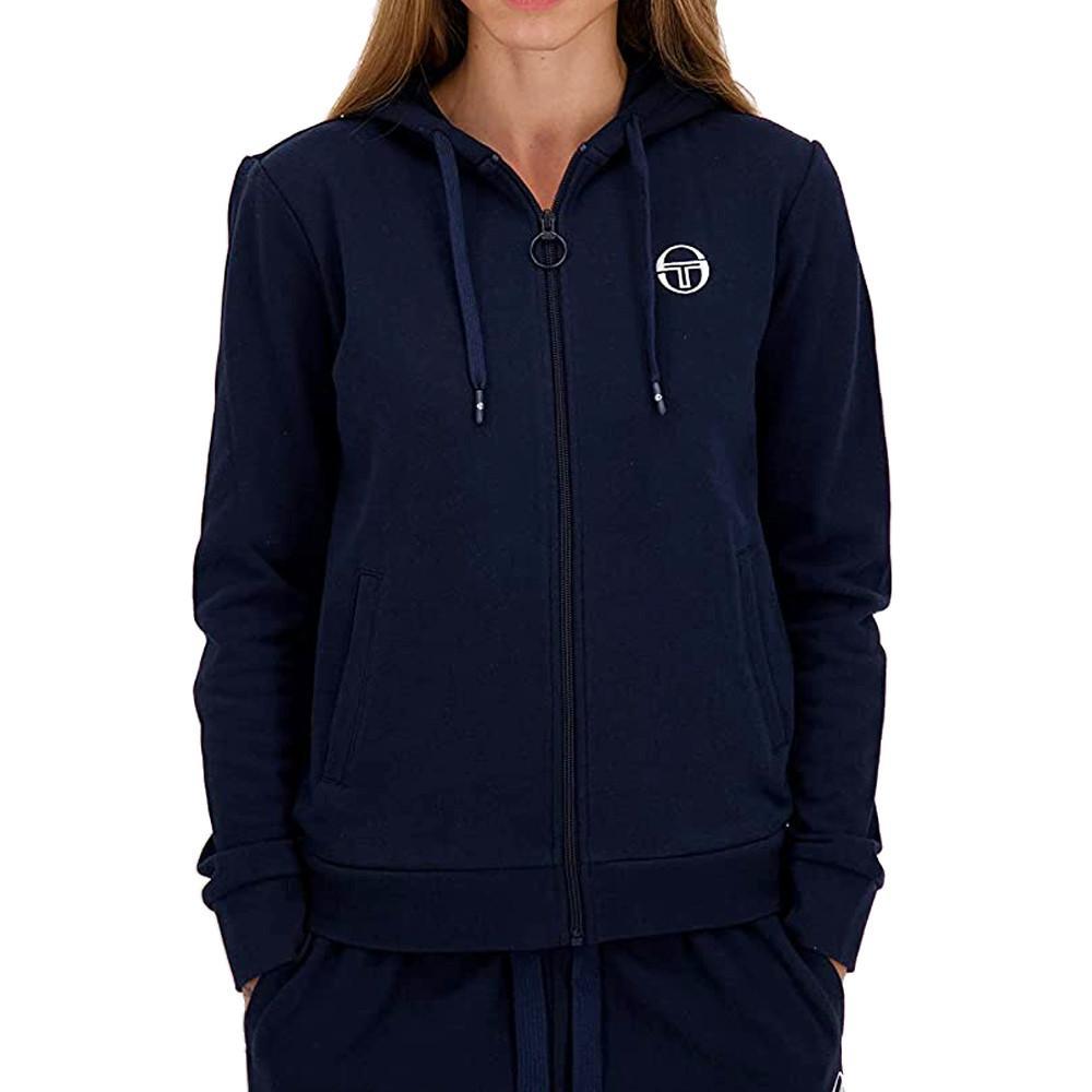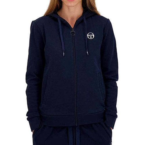 Sweatshirt à capuche pour femme signé Sergio Tacchini Coloris: Marine foncé Fermeture intégrale sur le devant Logo Sergio Tacchini brodé 2 poches Composition: 80% coton, 20% polyester