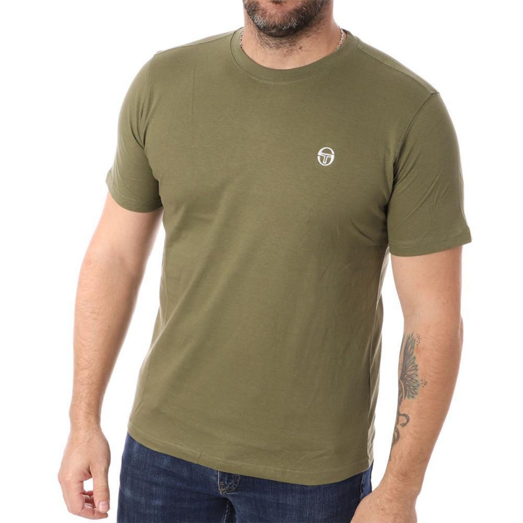 T-shirt pour homme de la marque Sergio Tacchini ! Coloris: Kaki Col rond Manches courtes Petit logo sur la poitrine brodé Composition: 100% coton