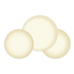 En savoir +Découvrez ce service d'assiettes en porcelaine 18 pièces EMBOSSÉ THALES! Ce service de couleur crème est composé de 6 assiettes plates de 26,5 cm, 6 assiettes à dessert de 19 cm et de 6 assiettes creuses de 20 cm. Service compatible au lave-vaisselle.