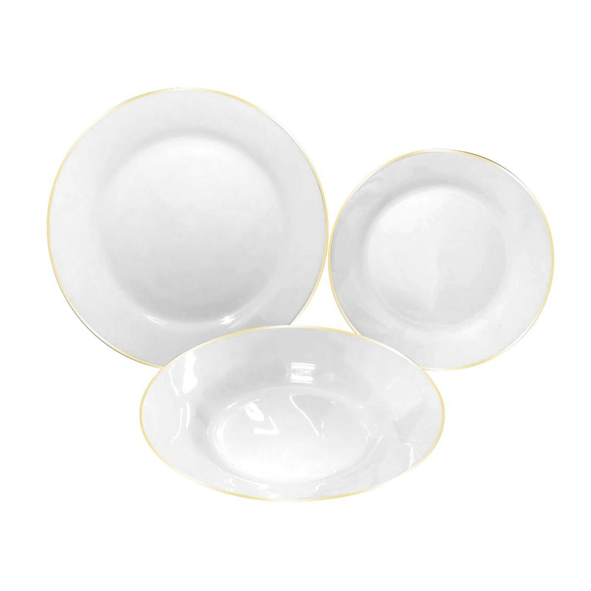 6 assiettes plates 24cm + 6 assiettes à dessert 19cm + 6 assiettes creuses 20,5cm