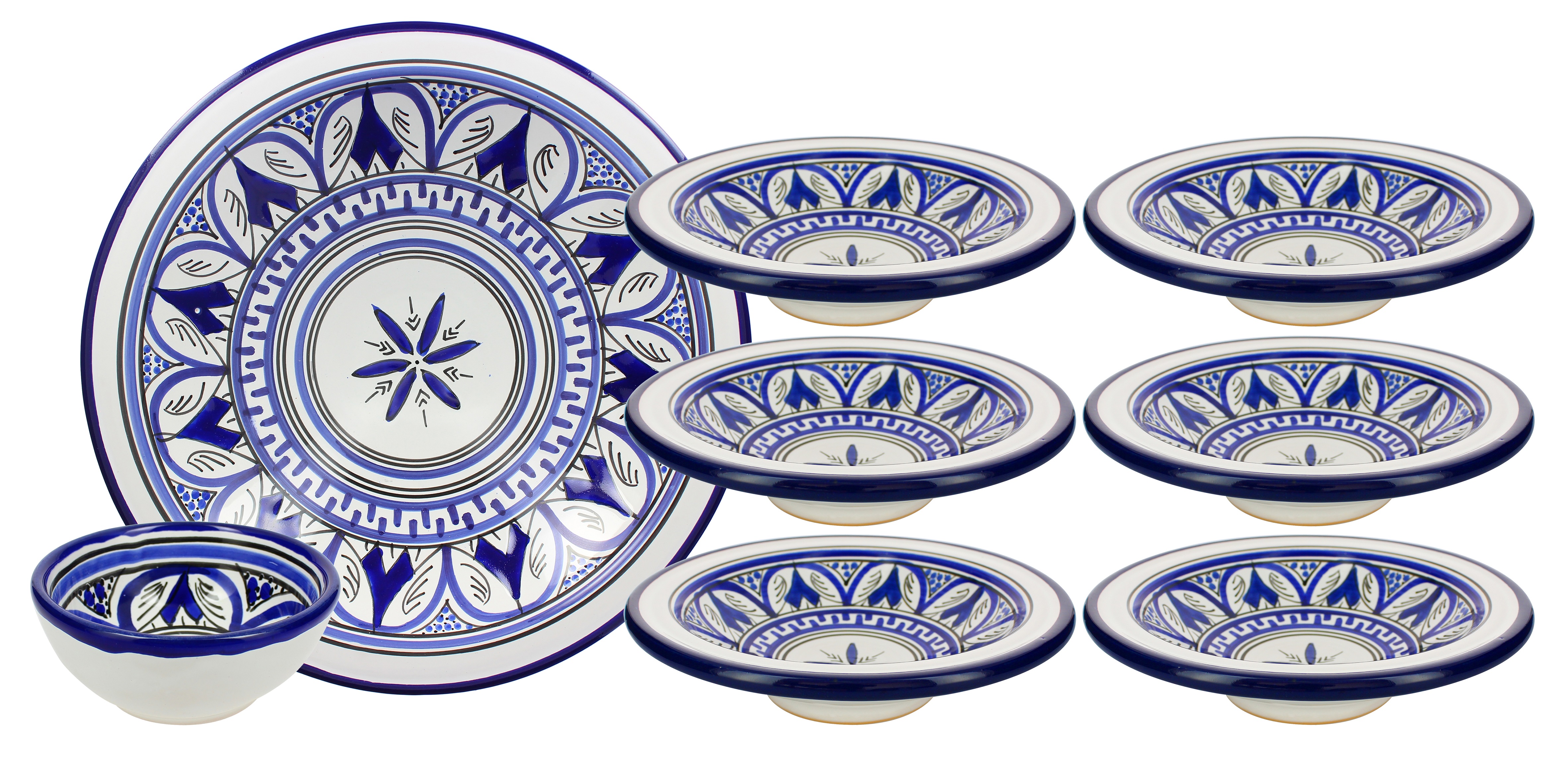 Service à couscous 8 pièces en terre cuite bleu marocain