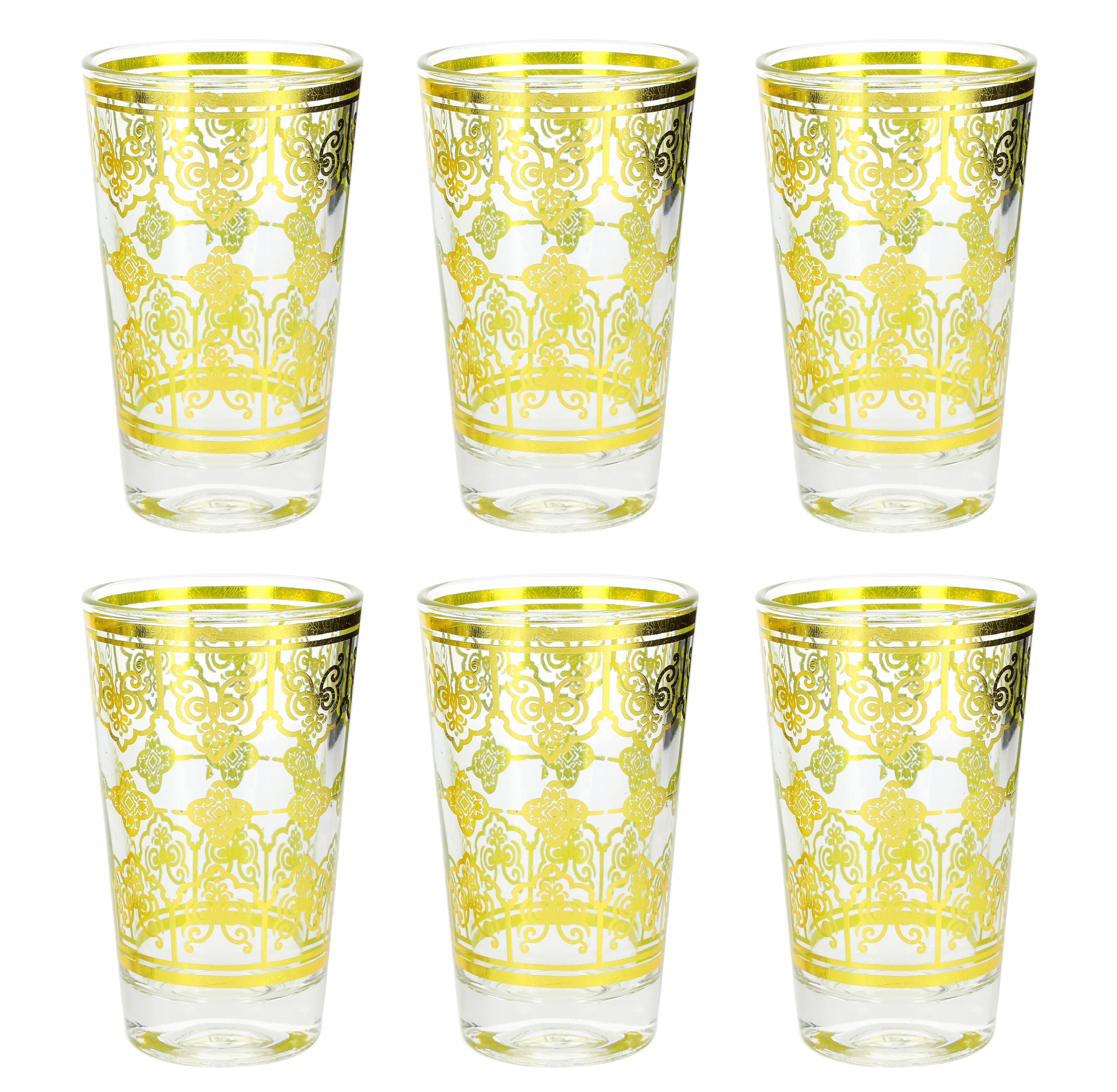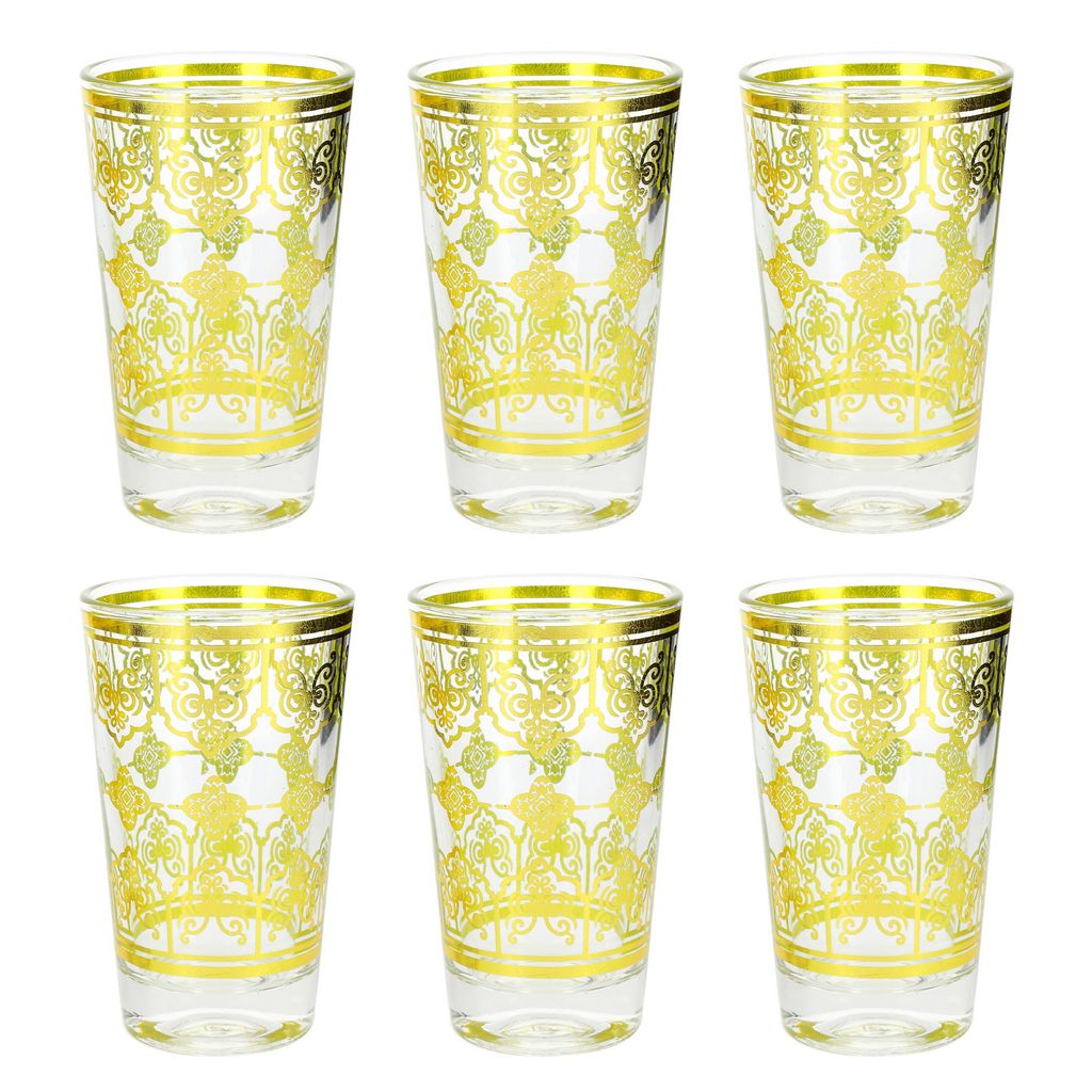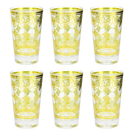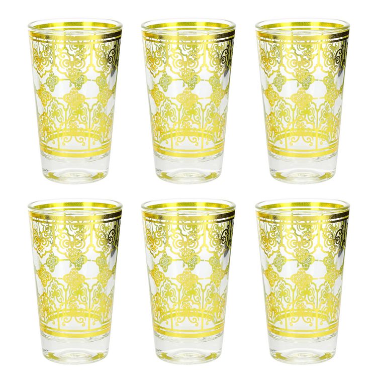 Servez et dégustez le thé dans ce service à thé composé de 6 verres d'une contenance de 12.5 cl et décorés de jolis motifs dorés. Non compatible lave-vaisselle.