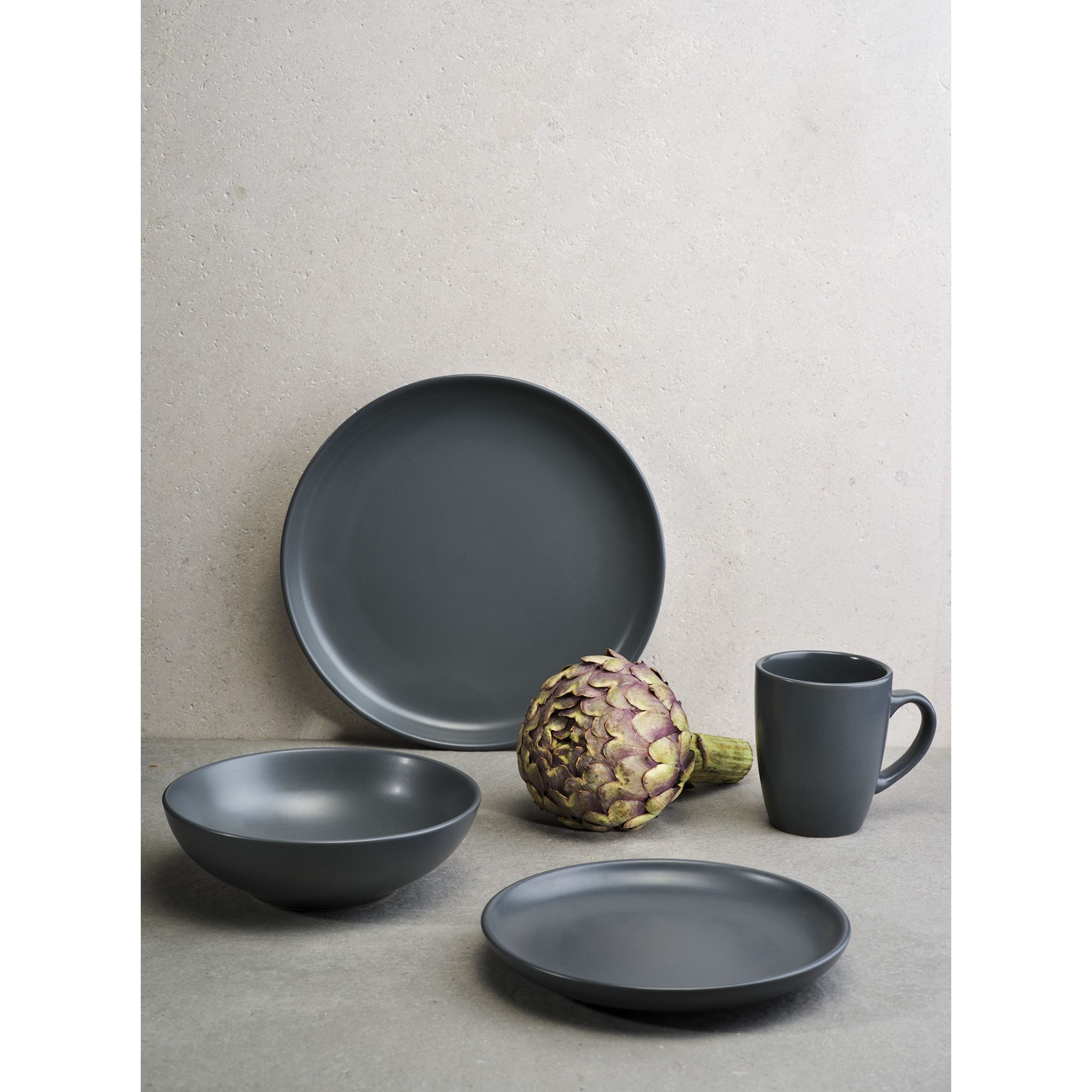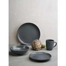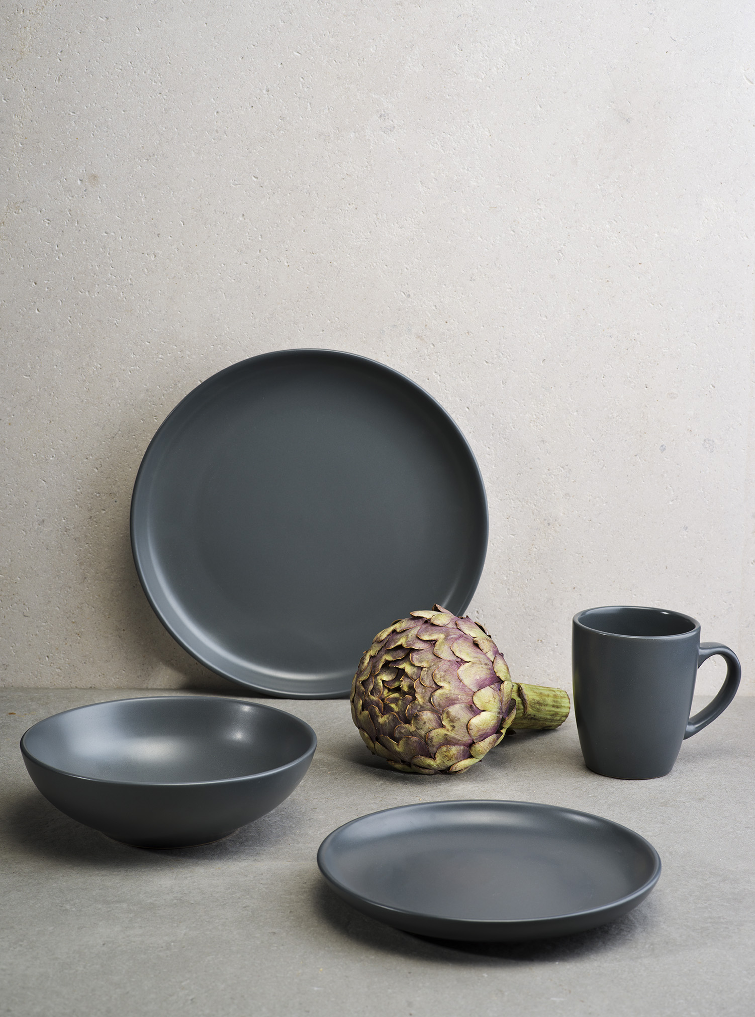 En savoir +Découvrez ce superbe service d'assiettes en grès de 18 pièces VIVIA DARK GREY. Il sera parfait pour habiller votre table lors de vos réceptions avec son design épuré et sobre. Ce service en grès est composé de 6 assiettes plates de 27 cm, de 6 assiettes creuses de 18 cm et de 6 assiettes à dessert de 20 cm.