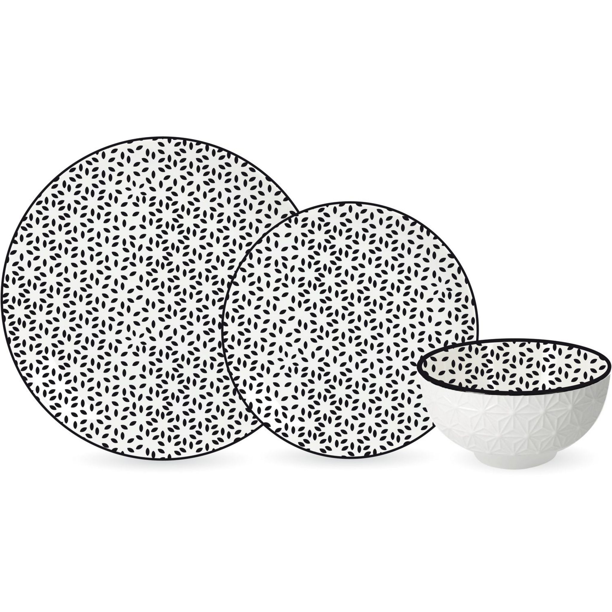 6 assiettes plates 24 cm - 6 assiettes à dessert 19 cm - 6 bols 11.5 cm