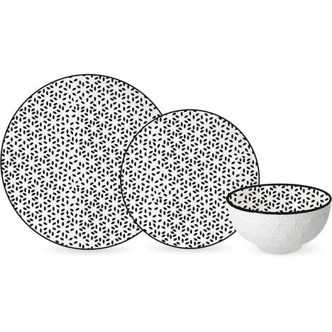 Service d'assiettes 18 pièces porcelaine NUIJIMA 6 assiettes plates 24 cm - 6 assiettes à dessert 19 cm - 6 bols 11.5 cm Compatible au lave vaisselle