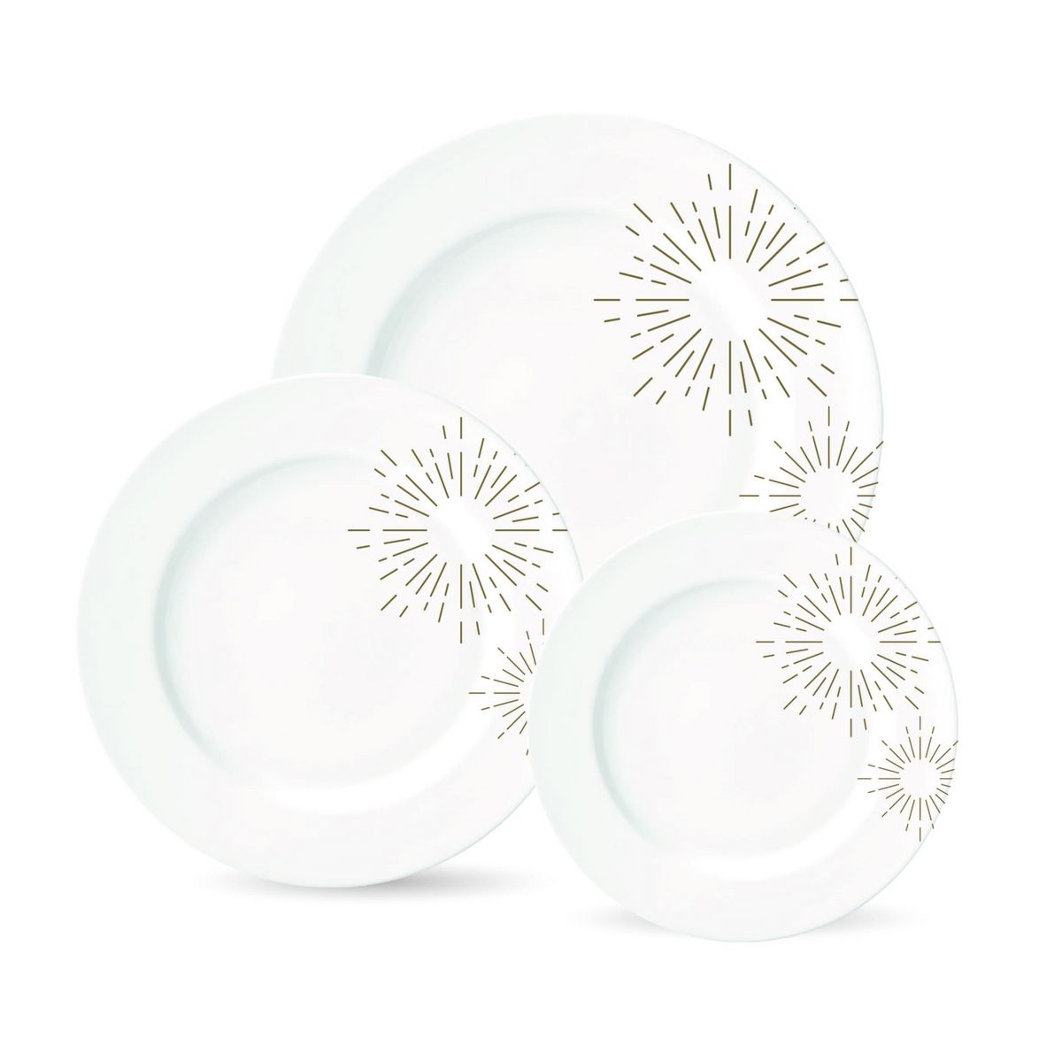Egayez votre table avec ce service d'assiettes 18 pièces en porcelaine blanche aux motifs chics et intemporels dorés. Compatible lave-vaisselle et micro- ondes.