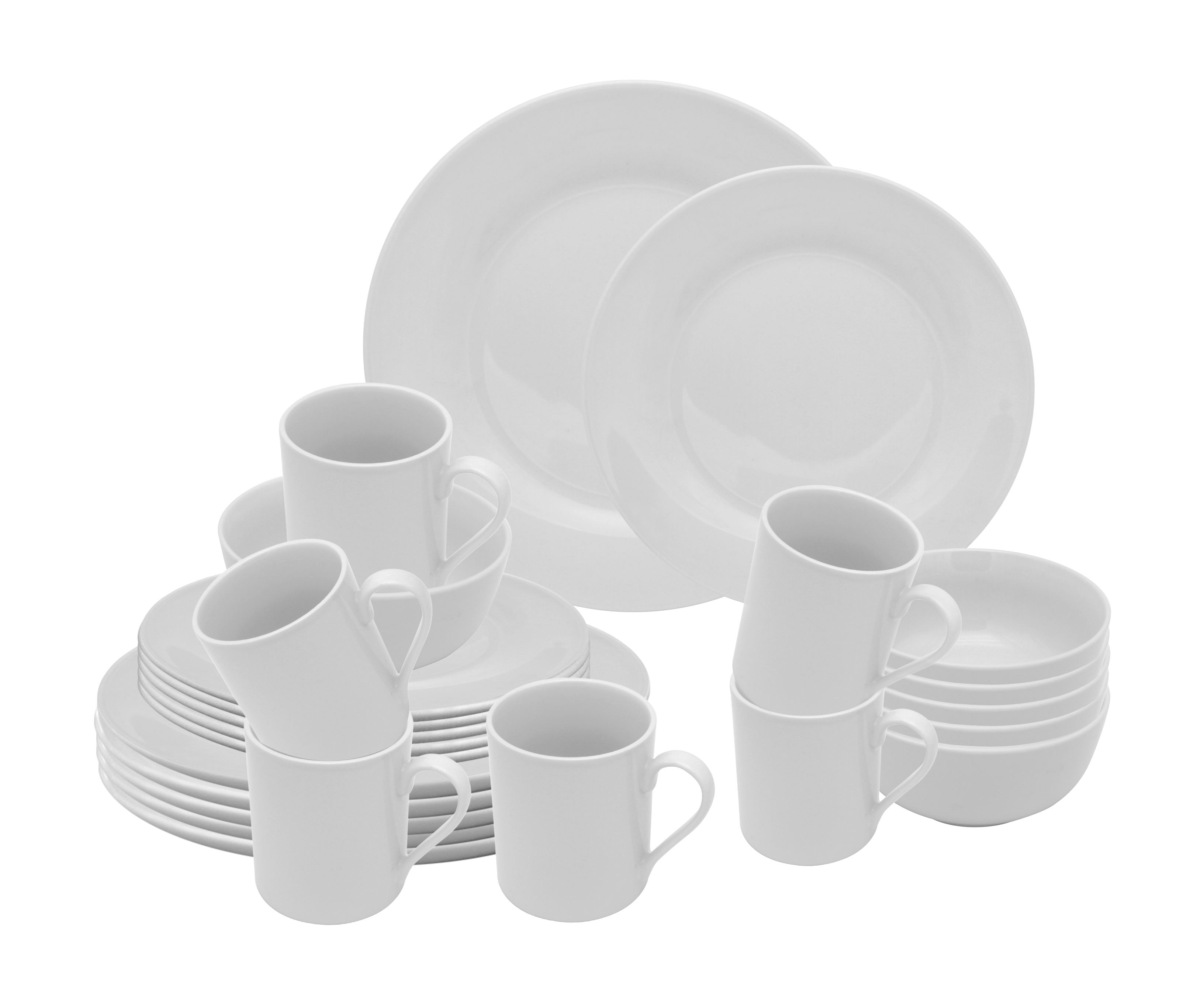 - 6 assiettes plates 24 cm - 6 assiettes à dessert 19 cm - 6 bols 14cm - 6 mugs 30CL