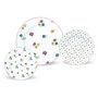 les assiettes trop belle , mais fissure dans une assiette, ça ne craque pas mais c'est bien visible, j'ai fait attention de ne pas utiliser. sinon le produit est bien.