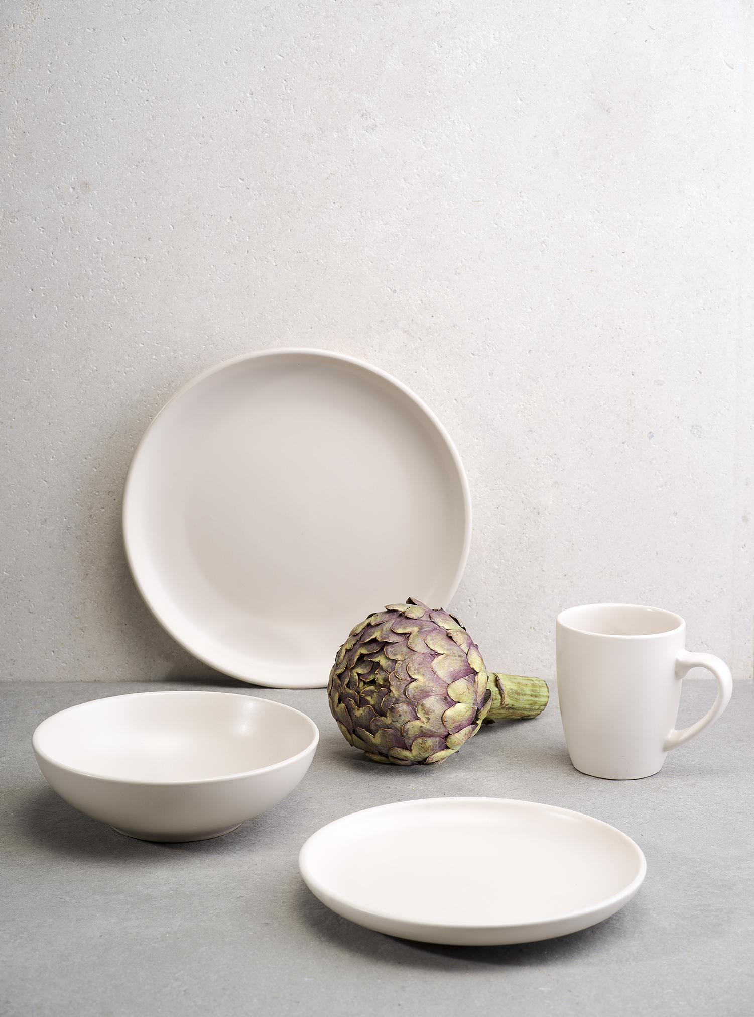 Découvrez ce superbe service d'assiettes en grès de 18 pièces VIVIA CREAM. Il sera parfait pour habiller votre table lors de vos réceptions avec son design épuré et sobre. Ce service en grès est composé de 6 assiettes plates de 27 cm, de 6 assiettes creuses de 18 cm et de 6 assiettes à dessert de 20 cm.