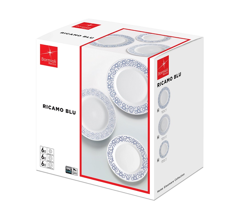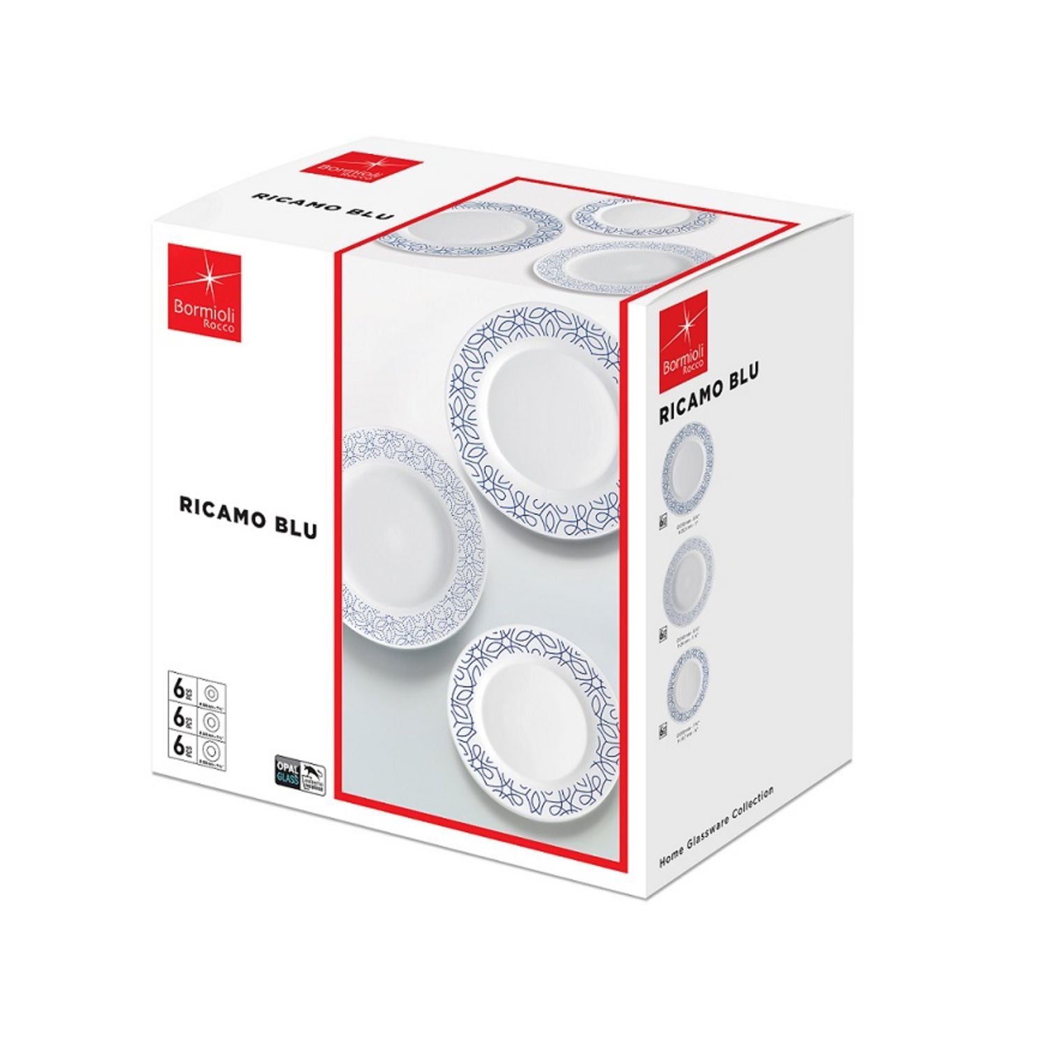 Service d'assiettes de 18 pièces Opale Bormioli "RICAMO"